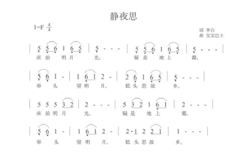 l播放《静夜思》音频,感受音乐与古诗结合的美。
