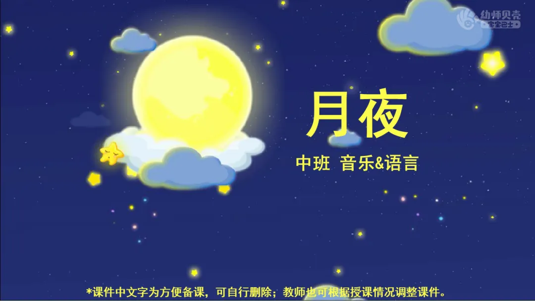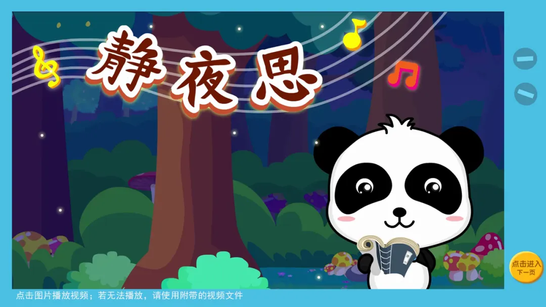 —— 古时候有一位叫李白的诗人,他看着圆圆的明月,也很想念家人,于是写成这首诗叫《静夜思》,我们一起再来听一听。