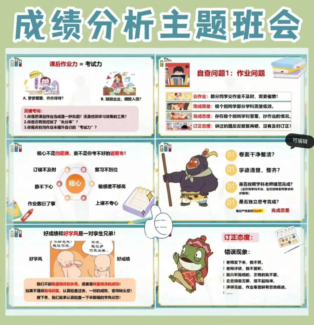 >考试成绩分析主题班会PPT课件|可编辑