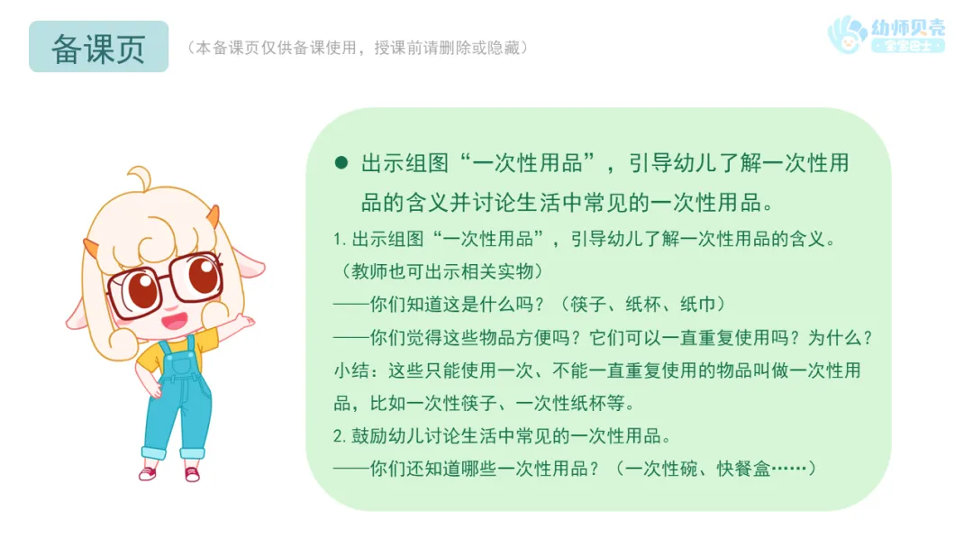 2.鼓励幼儿讨论生活中常见的一次性用品。