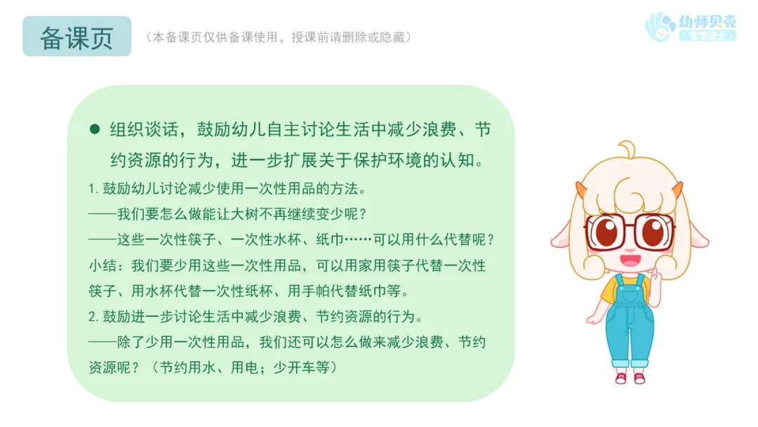 2.鼓励进一步讨论生活中减少浪费、节约资源的行为。