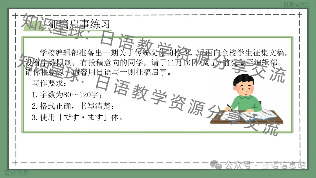 目前,知识星球里已经有400多份高考日语一二三轮复习用的专题课件、知识点总结、练习题;70多份高考日语作文相关资料(包含新题型作文课件,基础写作作文课件),还会持续更新上传。另外,还有很多高考日语新题型练习题及新题型作文课件。