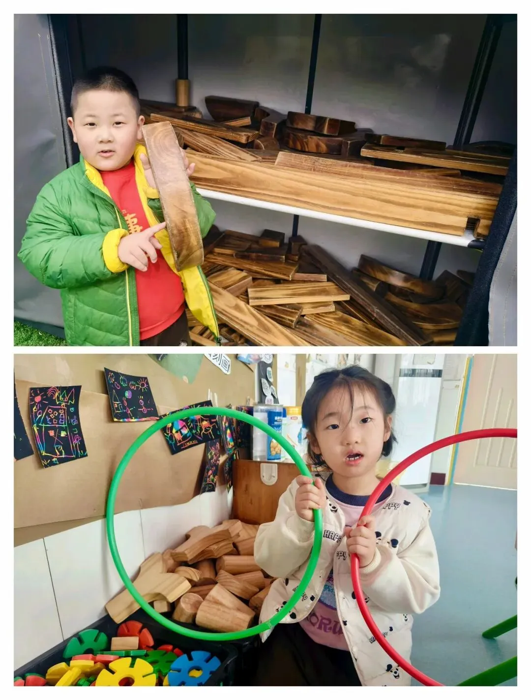 有的举着呼啦圈眼睛发亮:“用它当格子,跳进去像钻山洞!”