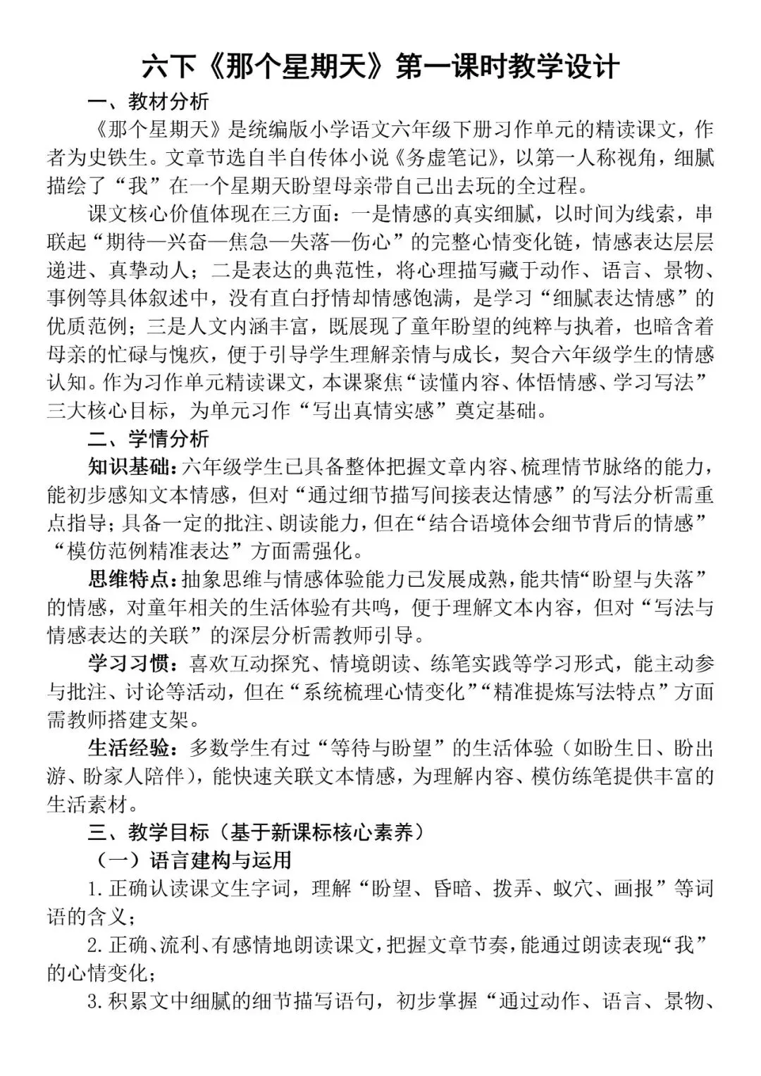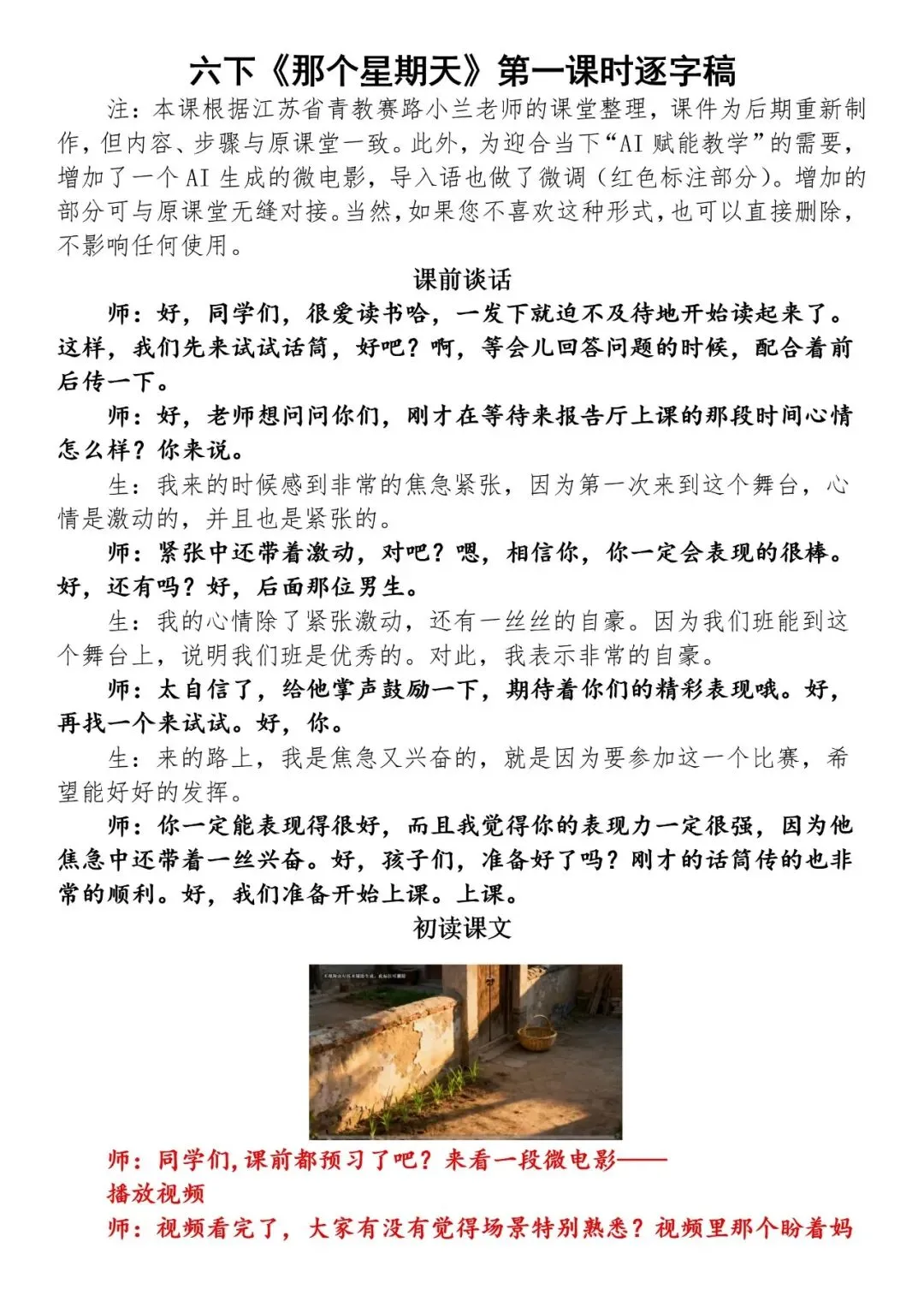 >六下《那个星期天》第一课时精品课件(PPT/希沃均有)有配套逐字稿、教学设计等
