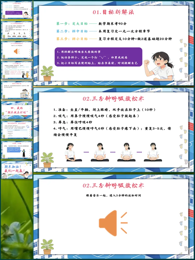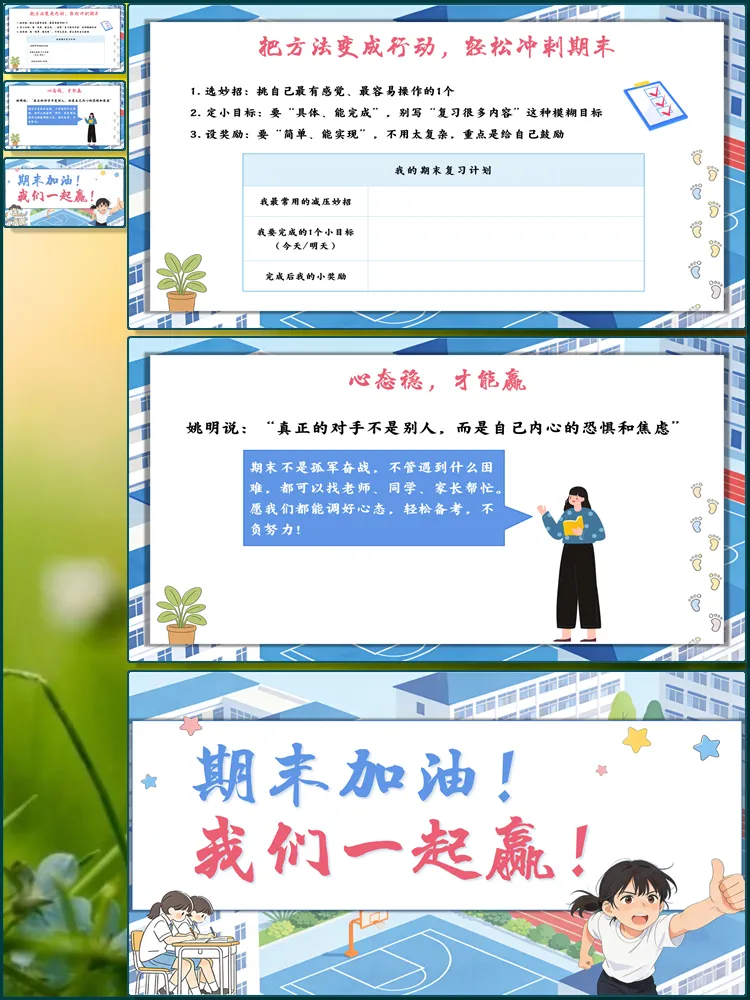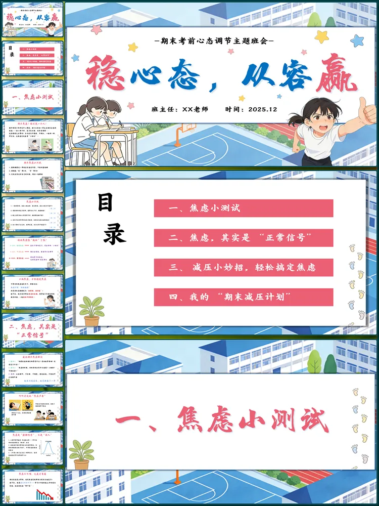 资料名称:【5833】期末考前心态调节主题班会《稳心态,从容赢》PPT课件+教案+发言稿(共24张ppt)