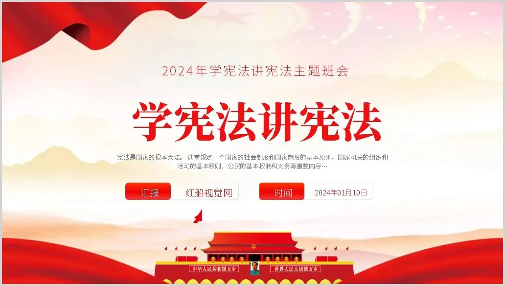 宪法是国家的根本大法,学习宪法知识是每个公民的责任和义务。本次微课堂PPT课件将以生动有趣的方式向同学们介绍宪法的基本内容,包括国家的性质、公民的基本权利和义务等。