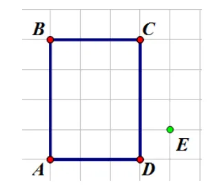 点击【绘图】→【显示网格】,点击【绘图】→【自动吸附网格】,隐藏原点、单位点、横轴、纵轴。构造长方形ABCD,构造任意点E,颜色改为绿色。如图2-7-7。