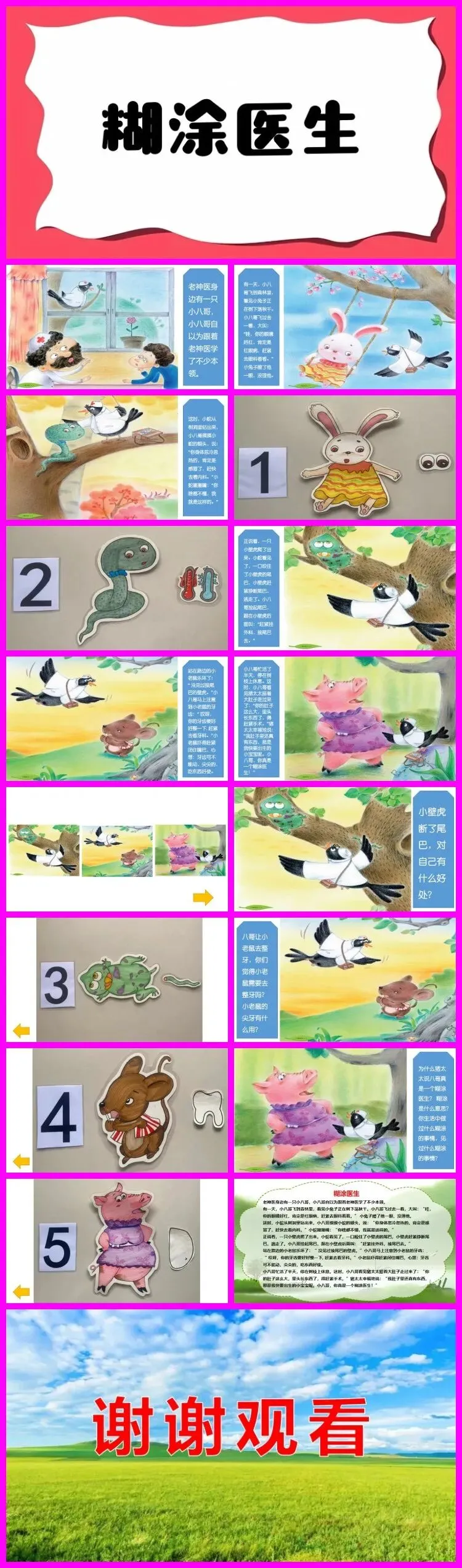 —— 教师结合挂图9号,讲述故事“老神医身边有一只小八哥”至“你真是一个糊涂医生”第一遍。