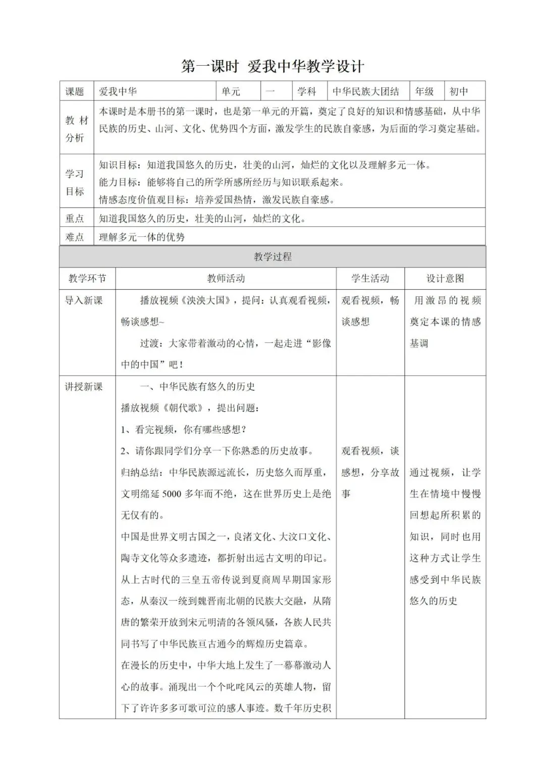 >人民版《中华人民大团结》初中 (教案+精品课件ppt+视频素材),可下载!