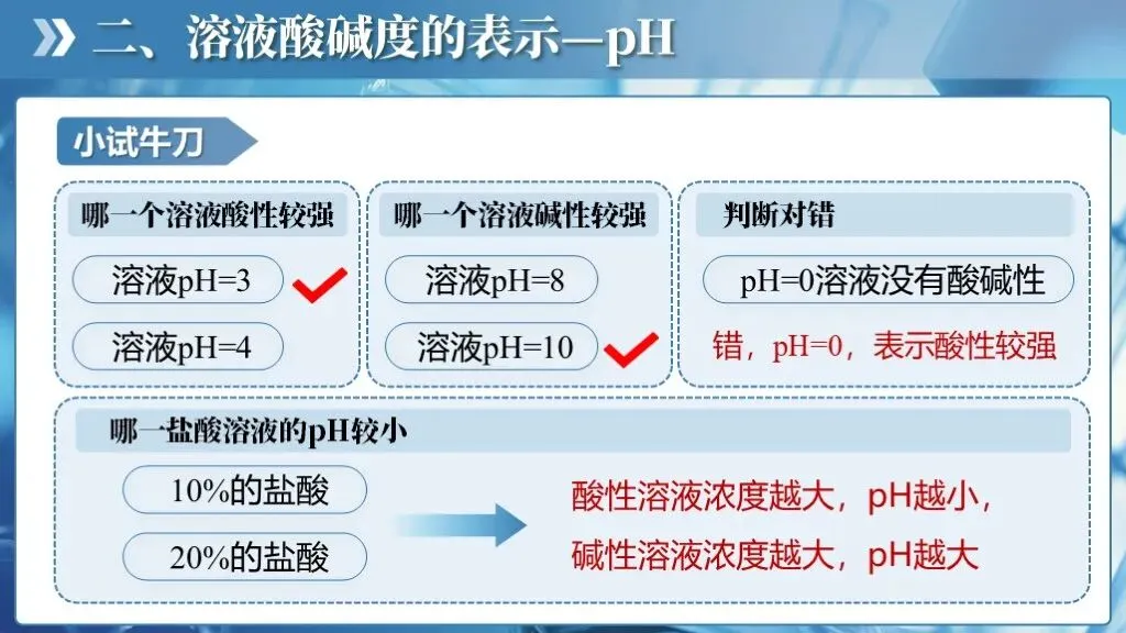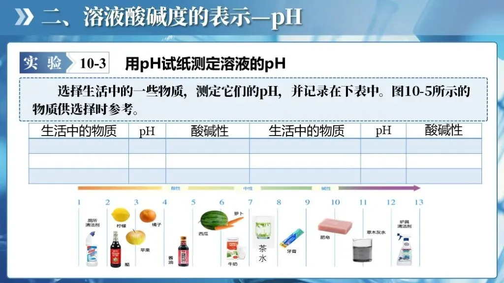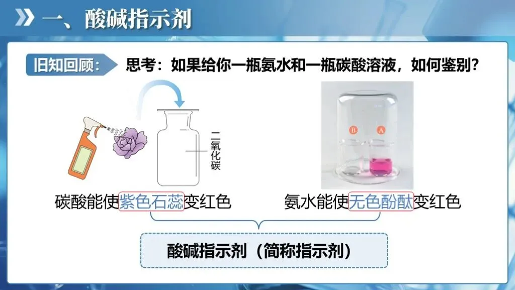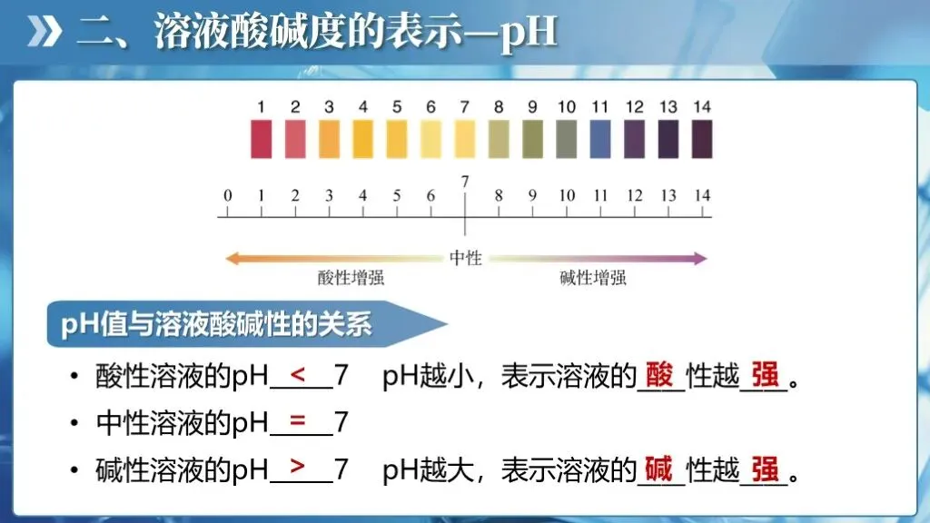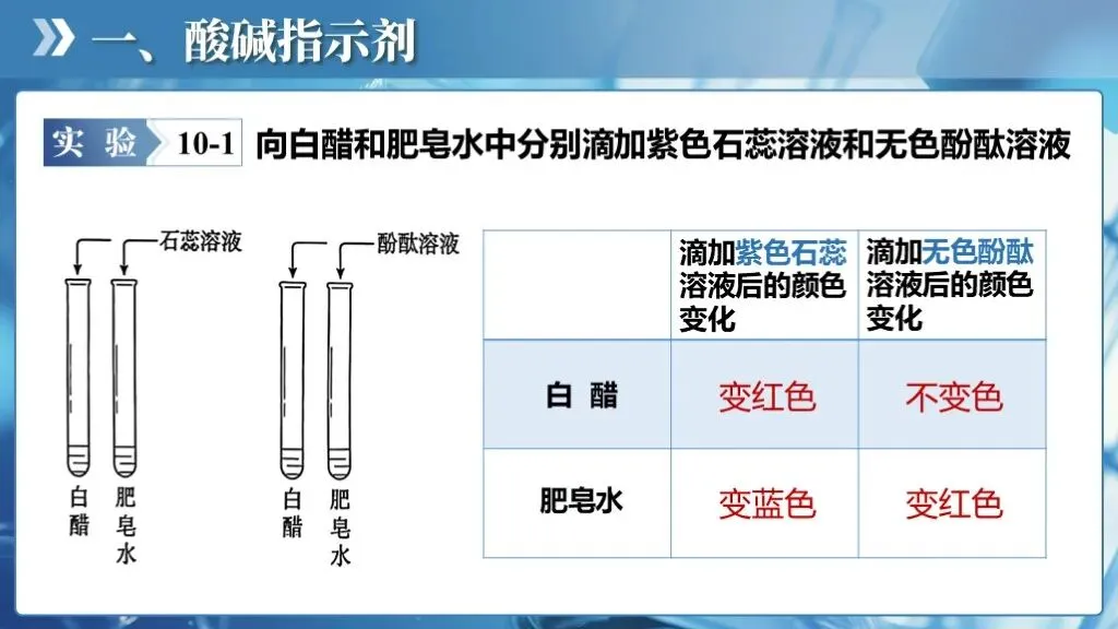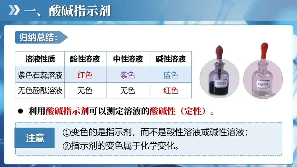 ✅认识溶液的酸碱性,学会用酸碱指示剂定性地检验溶液的酸碱性;