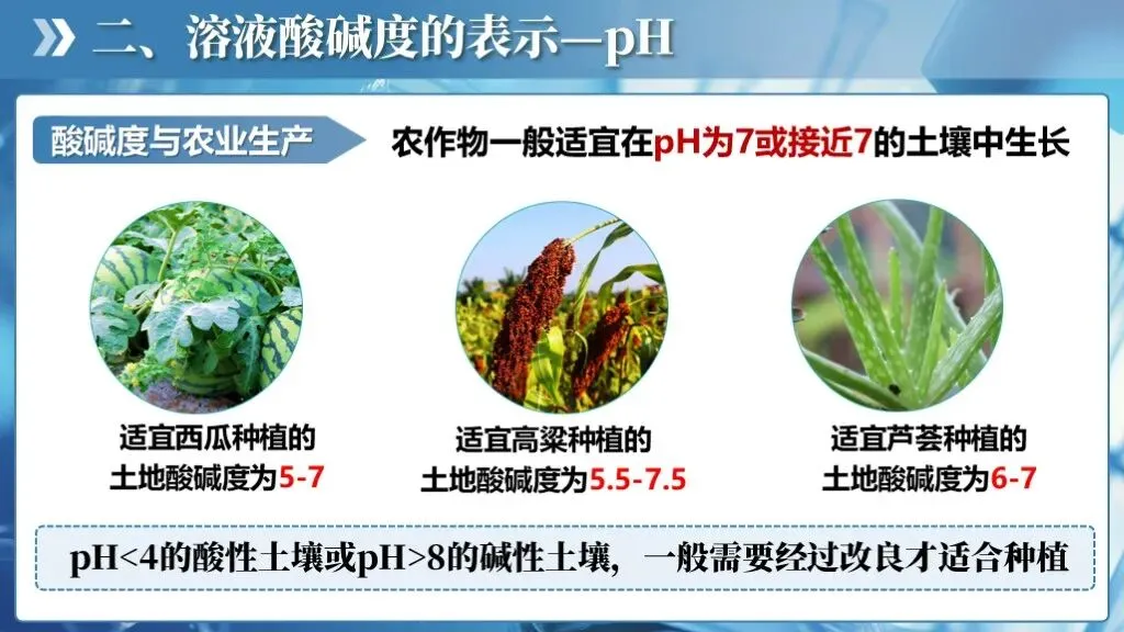 ✅知道酸碱性对生命活动及农作物生长的重要性及影响。