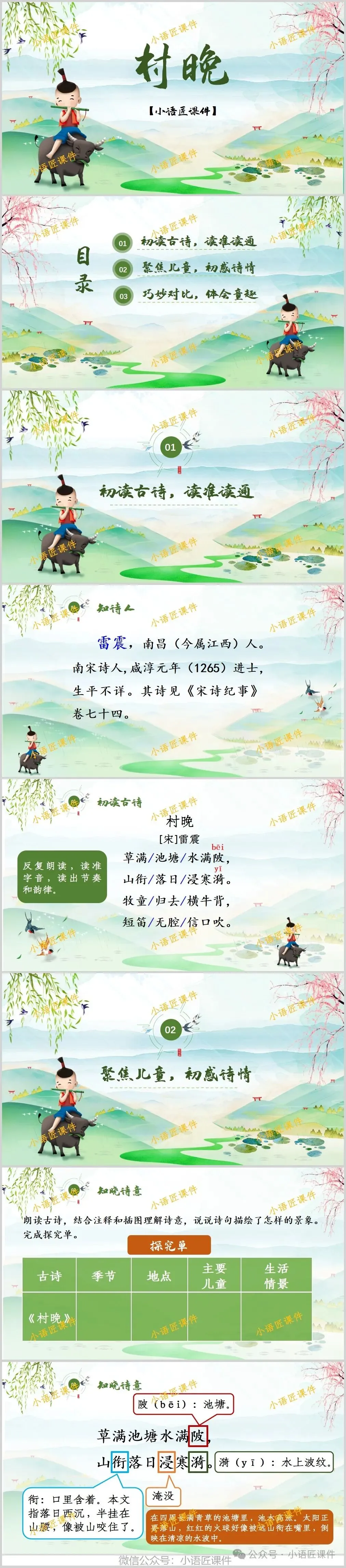 今天给大家分享部编版五年级下册《古诗三首:村晚》的独家课件。