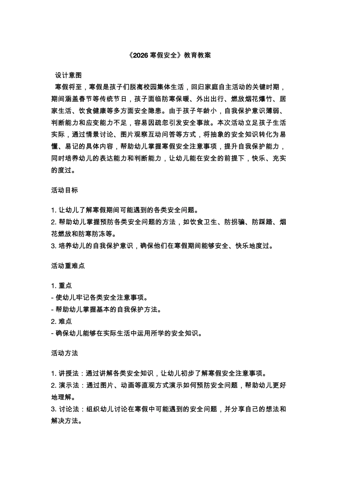 幼儿园2026寒假安全36页PPT+教案