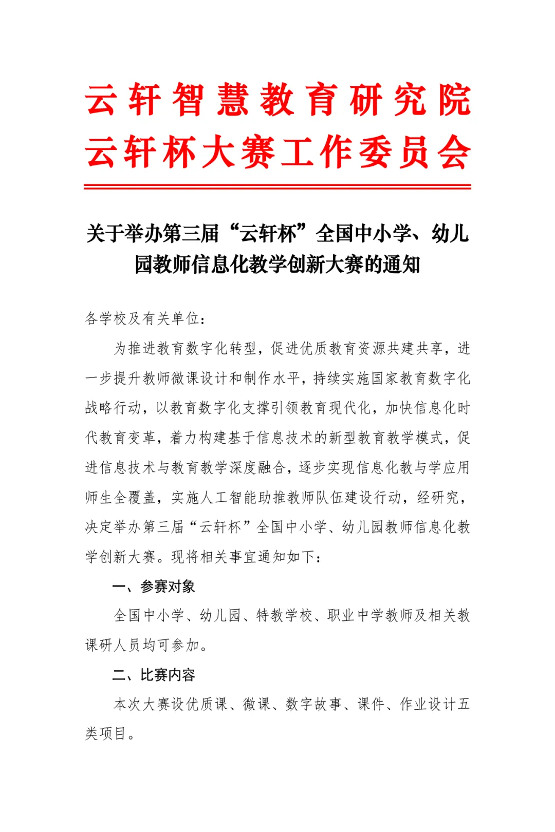 关于举办第三届“云轩杯”全国中小学、幼儿园教师信息化教学创新大赛的通知