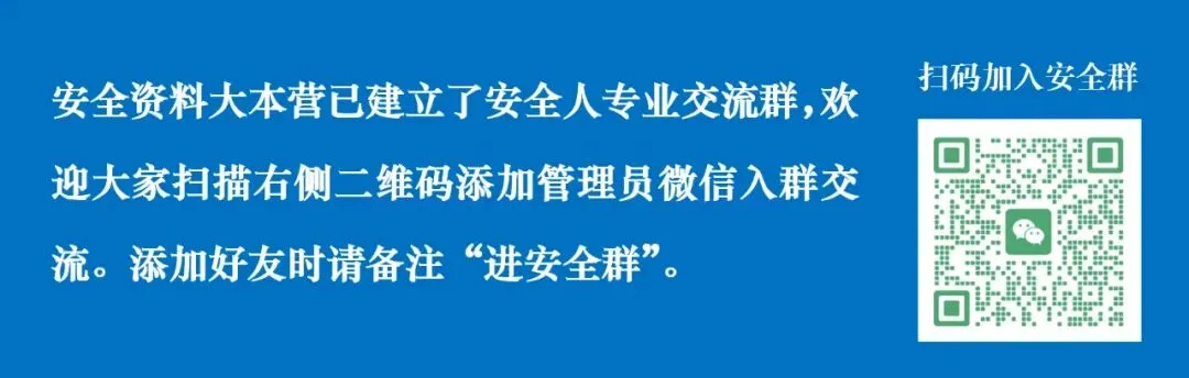 安全专业团队倾力打造精品资料库,海量安全资料随时下载,课件、模板、法规、视频一应俱全,点击【安全资料大本营】知识星球登录,开始你的学习之旅