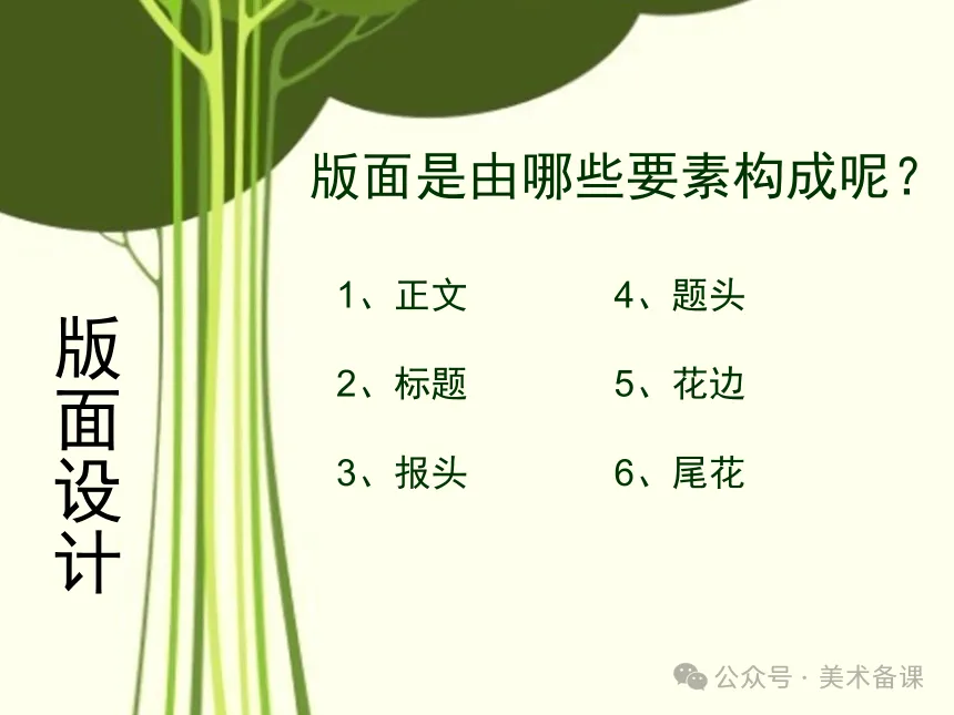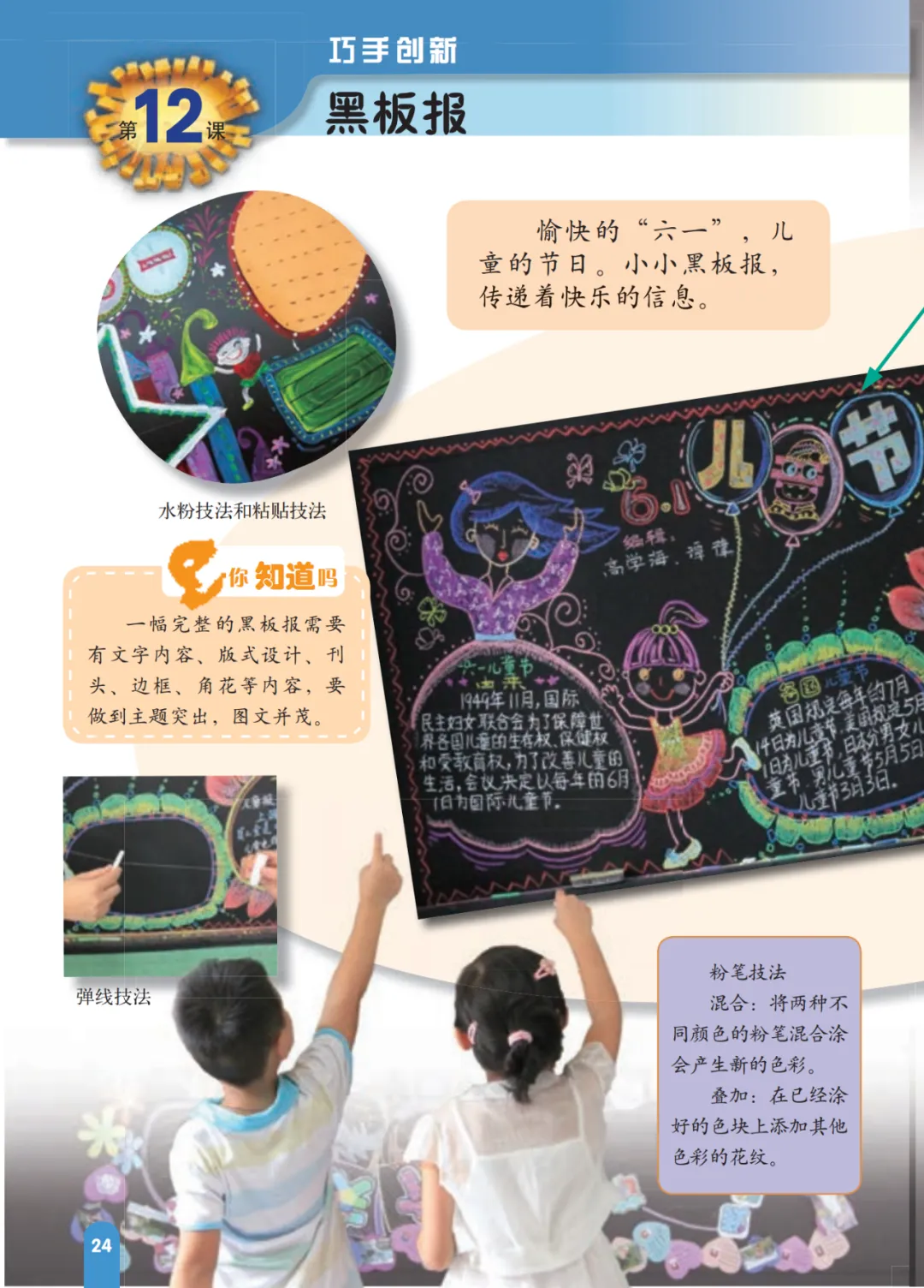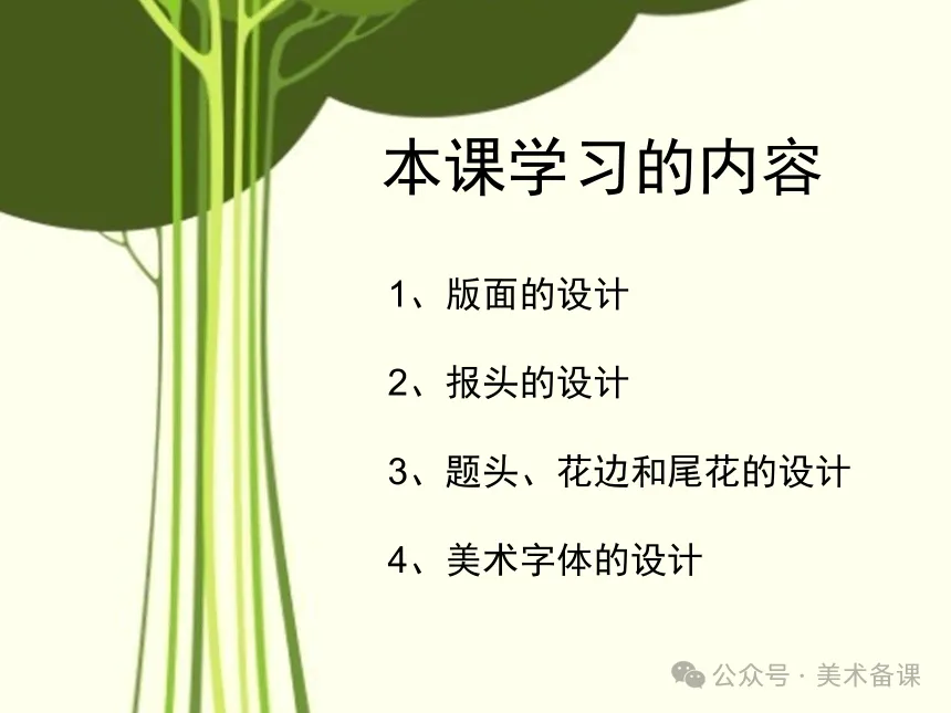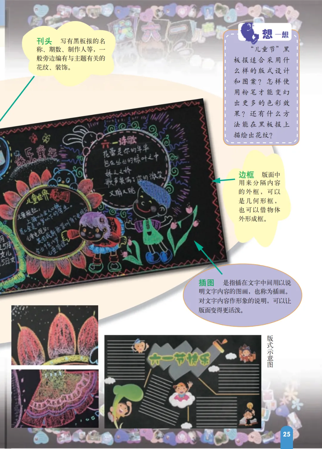1.了解板报的特点以及构成元素,美术字的学习、刊头设计、以及标题编排。