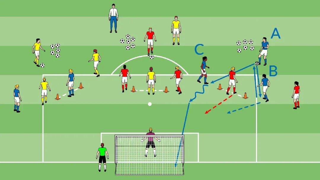 • C传球给A后,进行跑动基础训练中的一项练习(3)