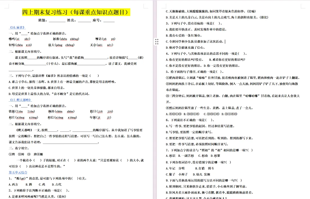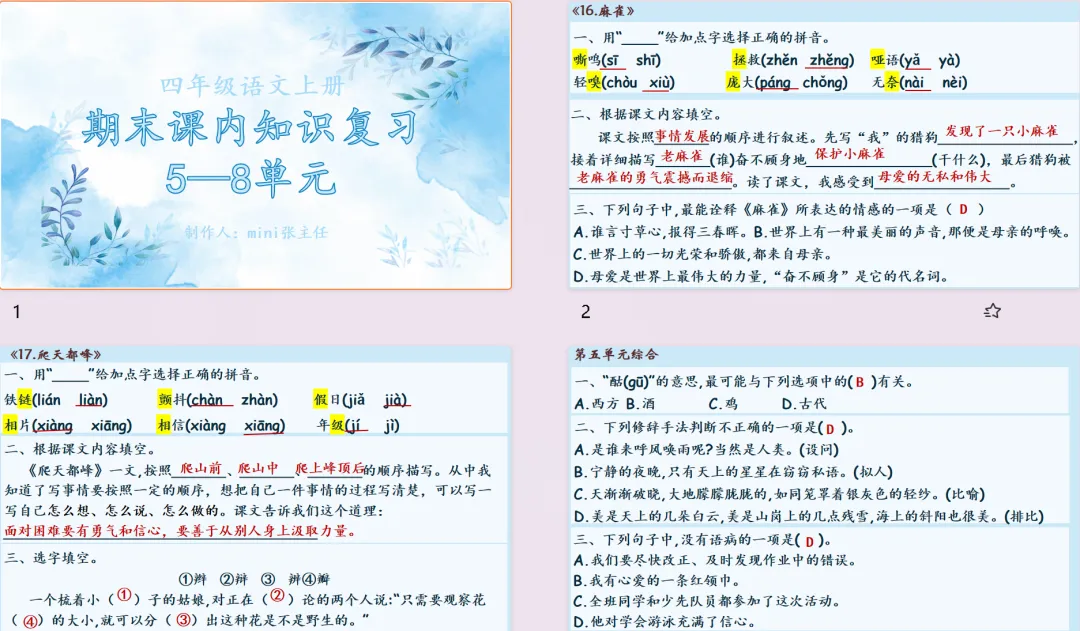 四上 | 期末5-8单元复习课件