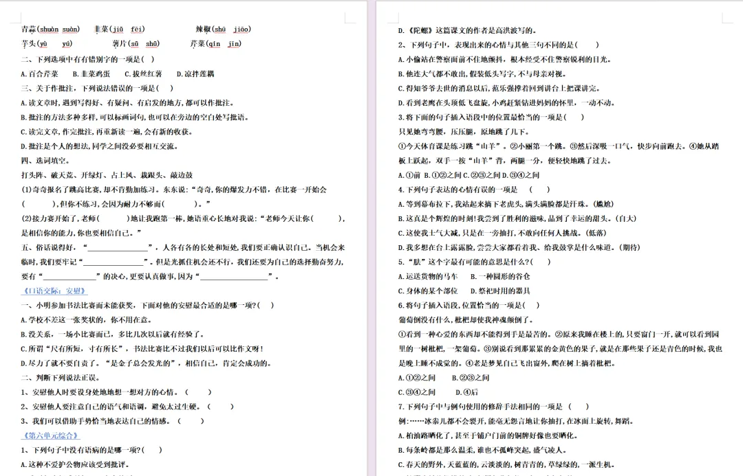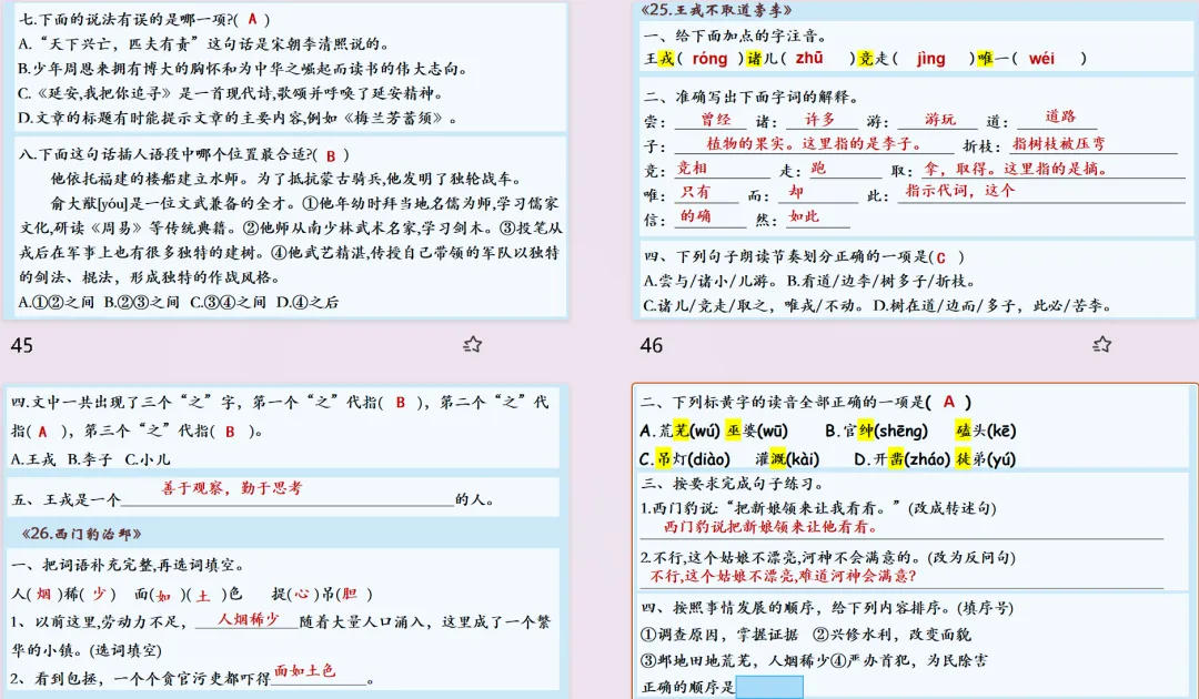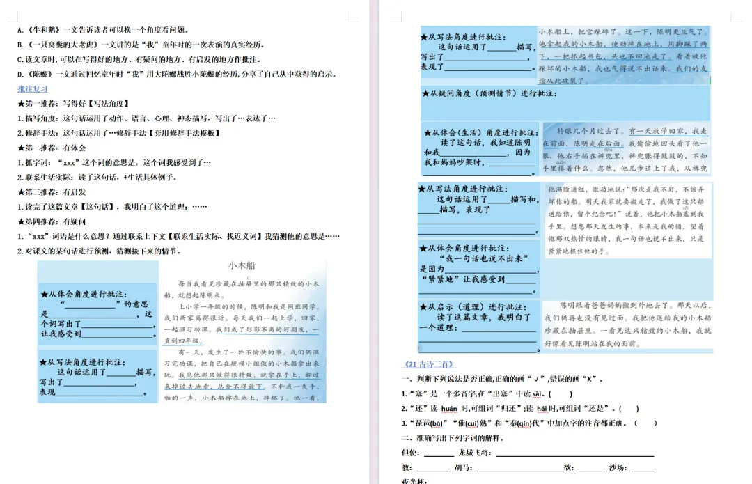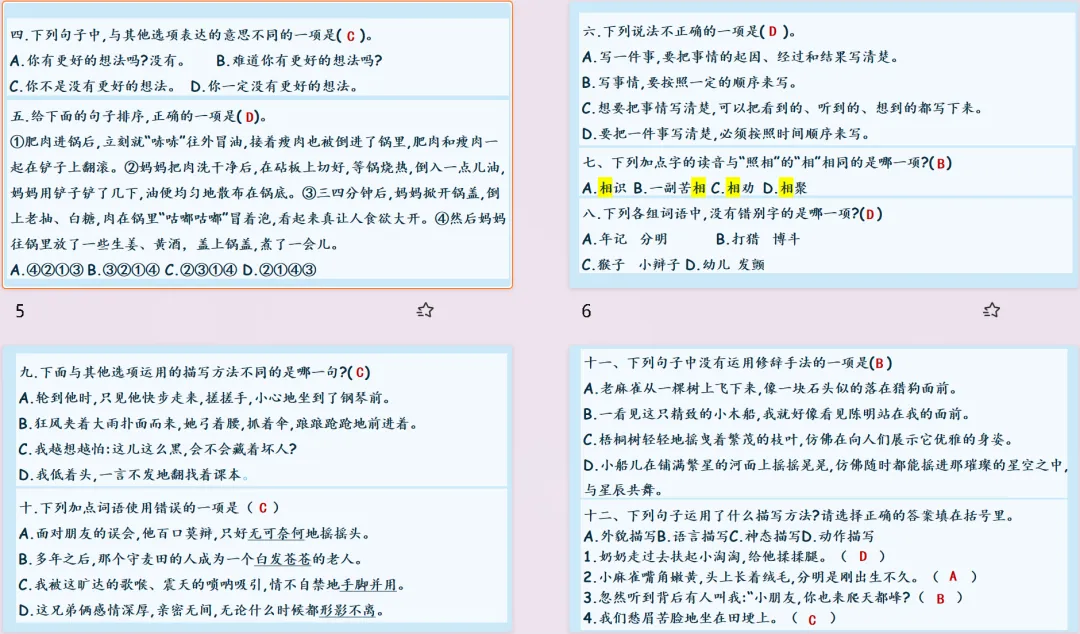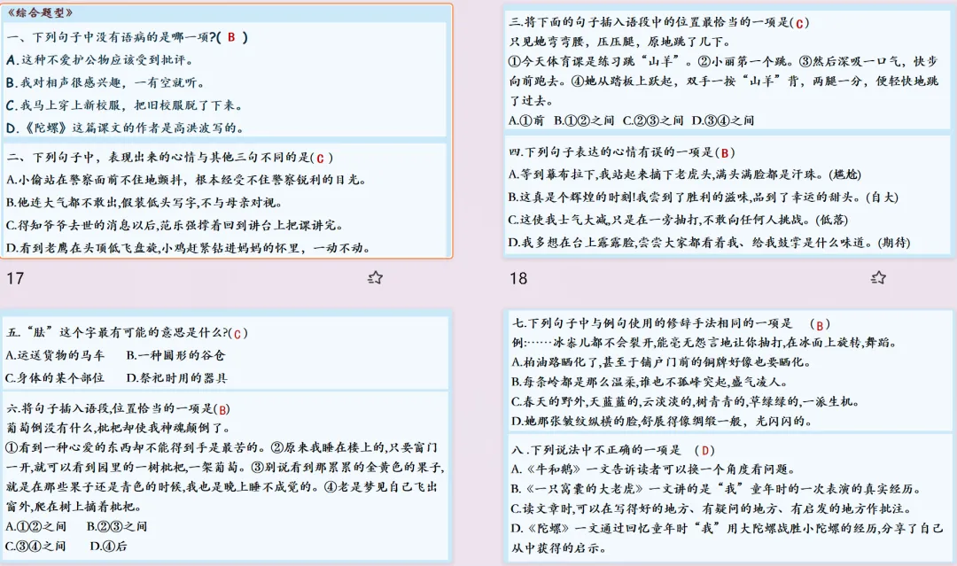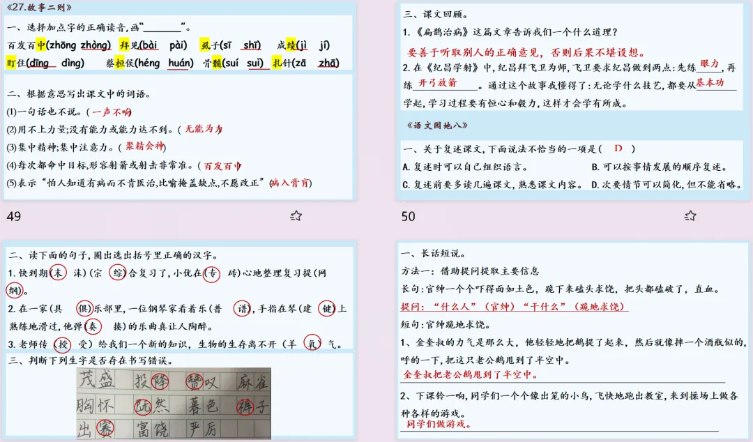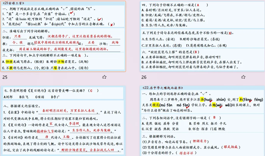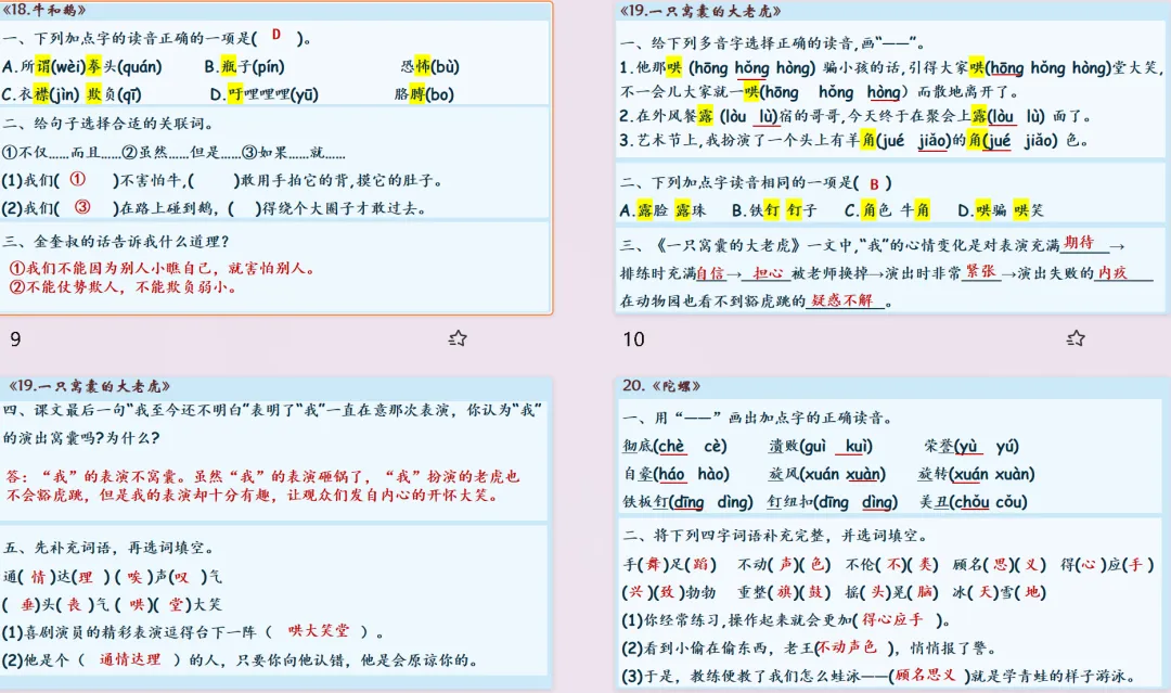 【复习课件】部编版四年级上册语文第五单元闯关复习课件