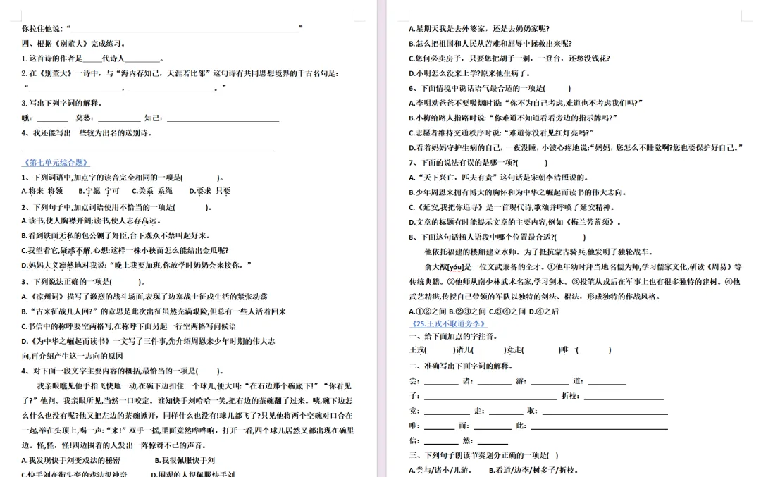 初中语文期末复习课件大合集