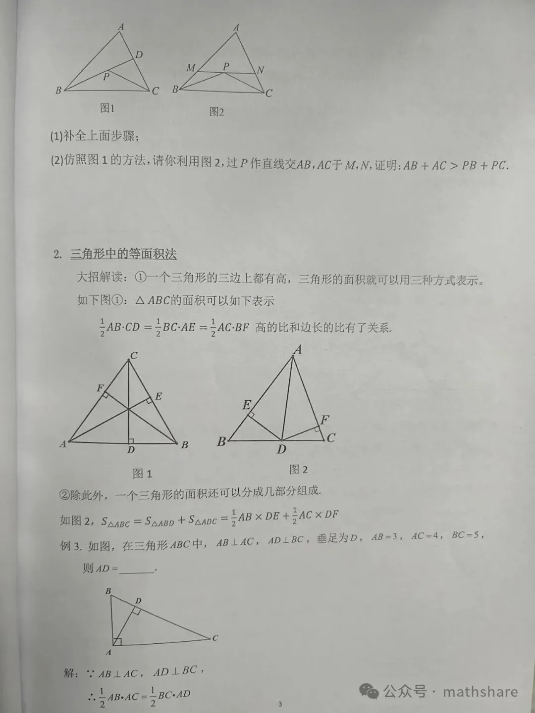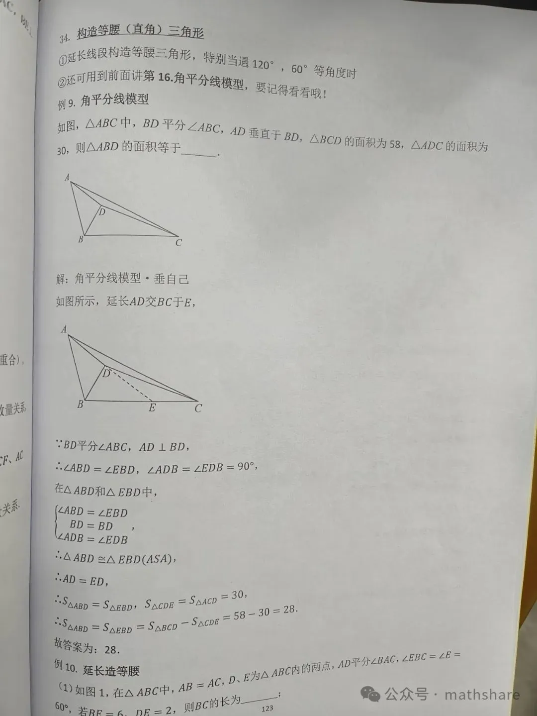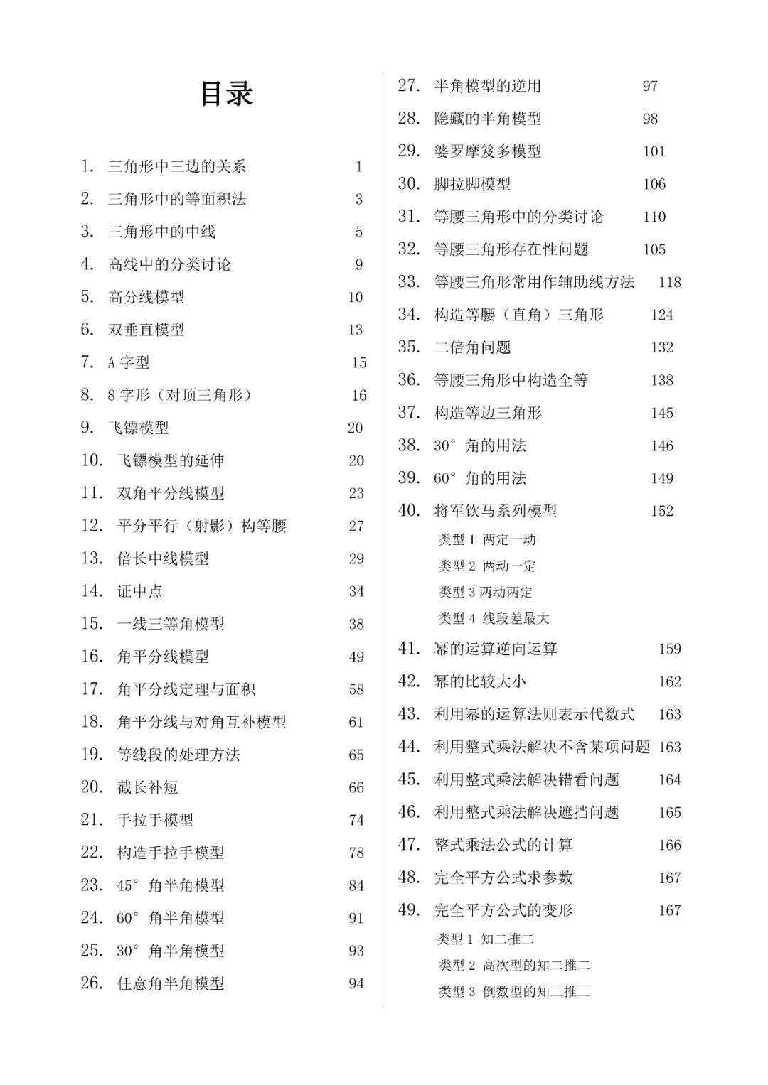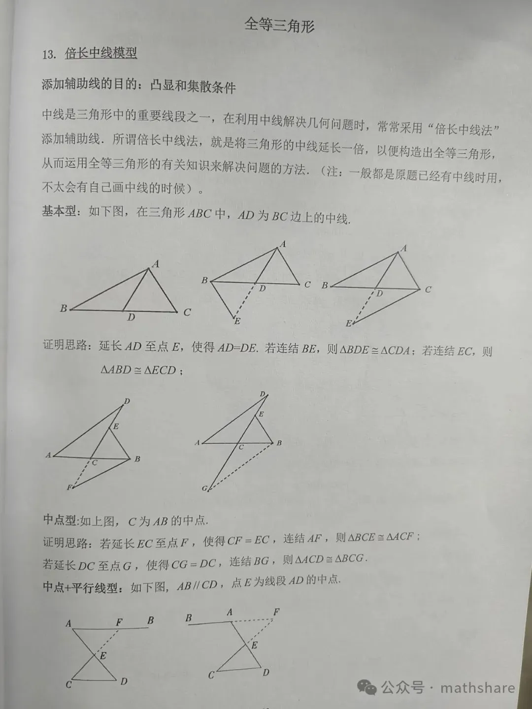 几何模型难点突破,倍长中线、手拉手、半角模型、截长补短、因式分解各种、分式方程增根无解···等等,难点突破大招讲解+例题+练习。