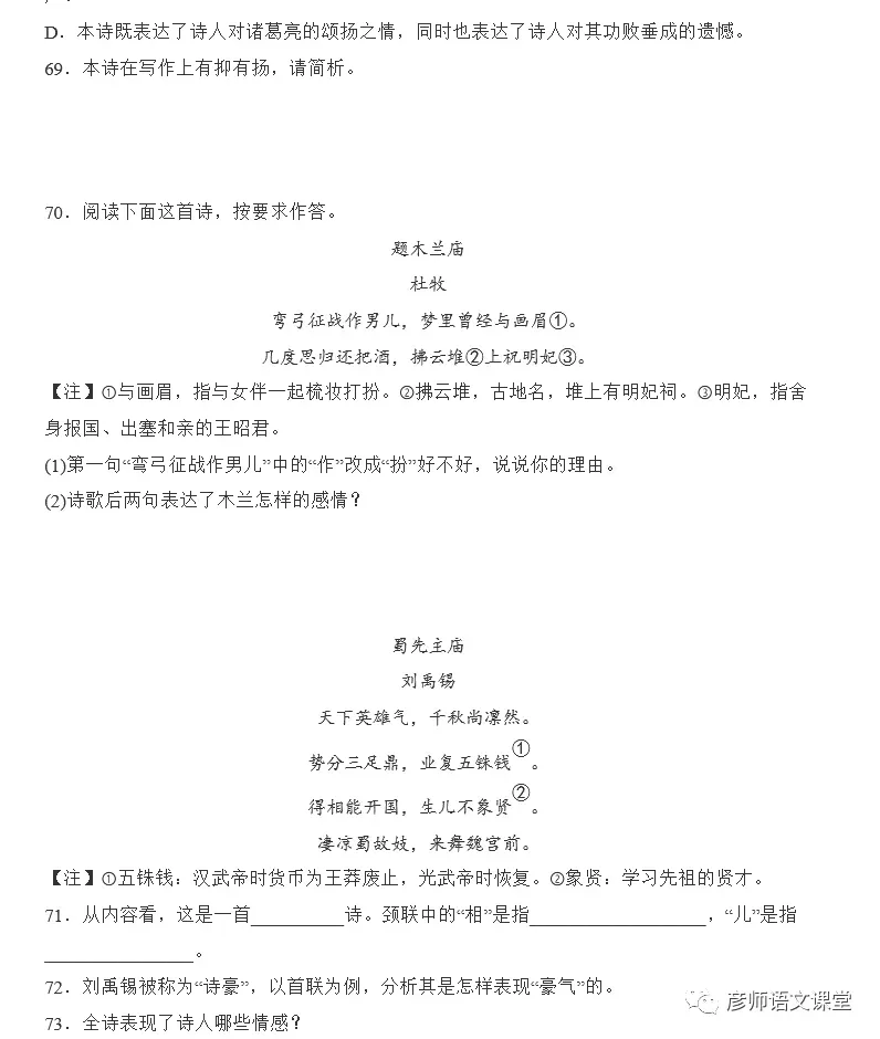 初中文言文、古诗、名著阅读全集