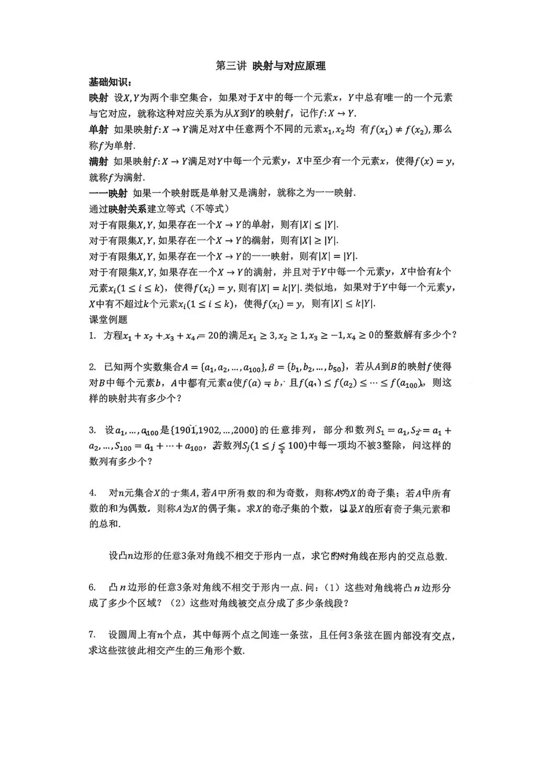 今天给大家分享苏州中学预备营讲义第三讲《映射与对应原理》,面向小高年级学生培训,难度对标高联一试。