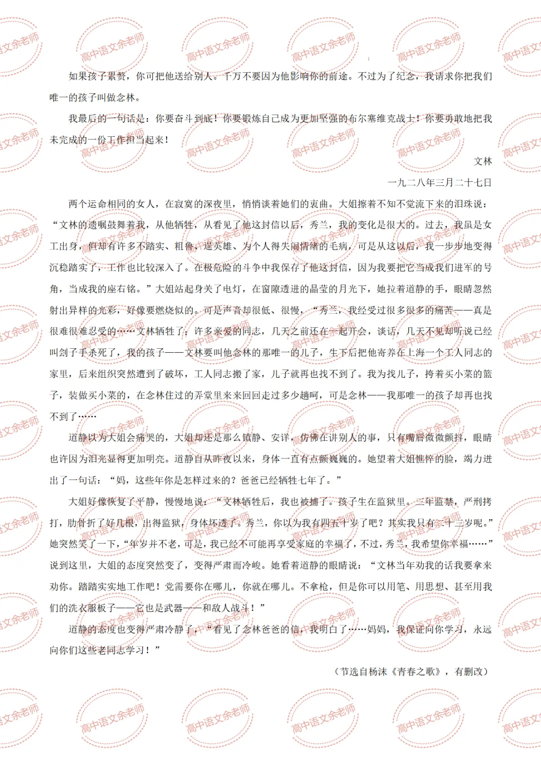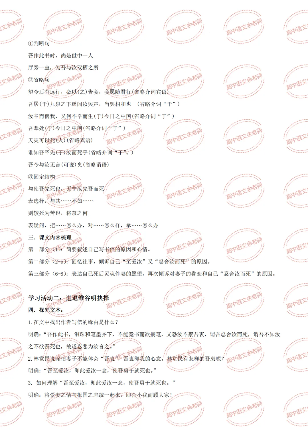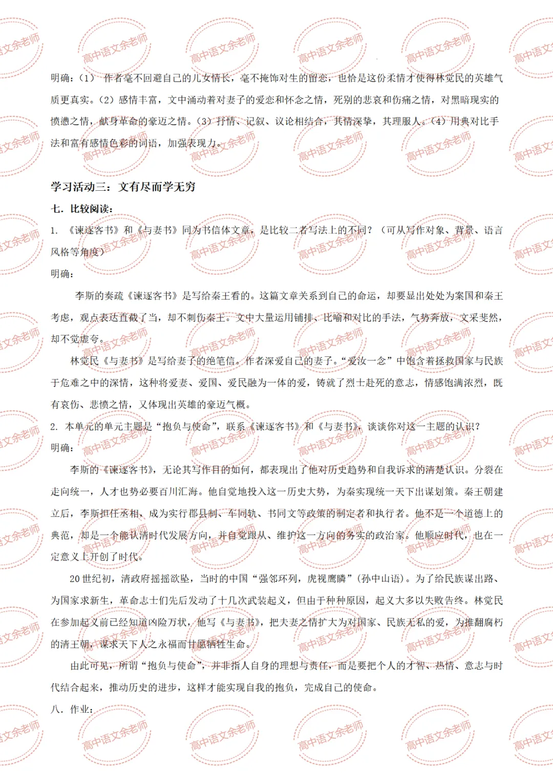 >《与妻书》教案设计及课件PPT 导学案 分层作业 【适配高中语文 必修下册】教师备课