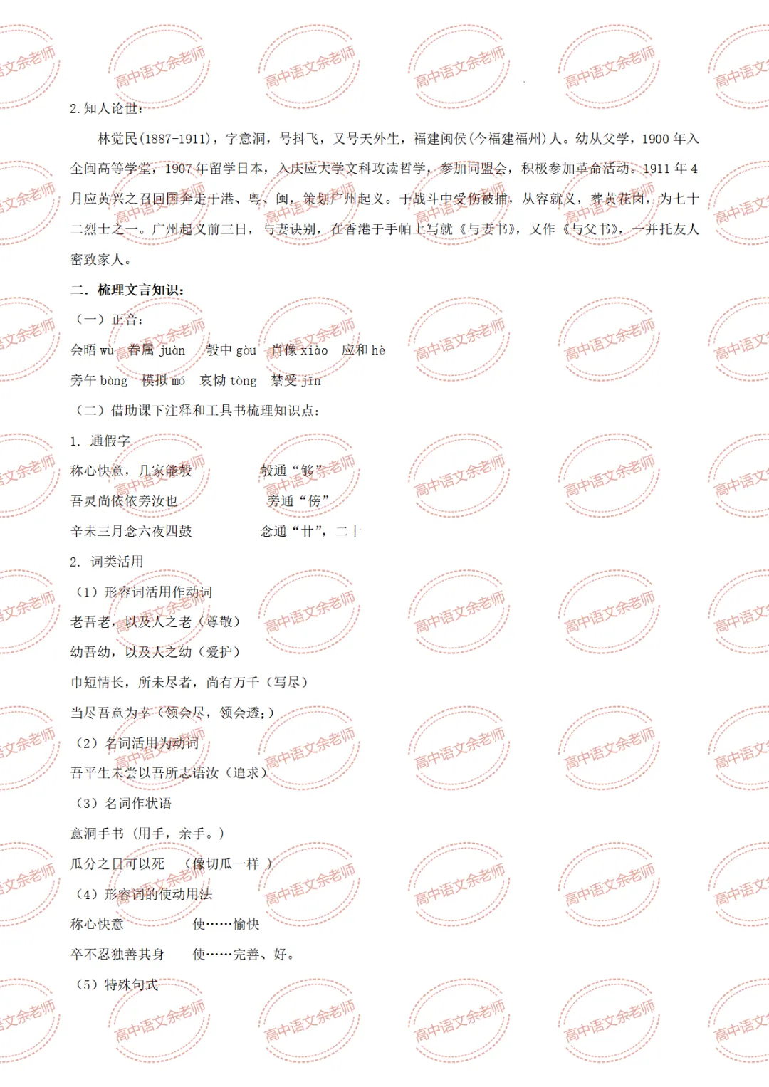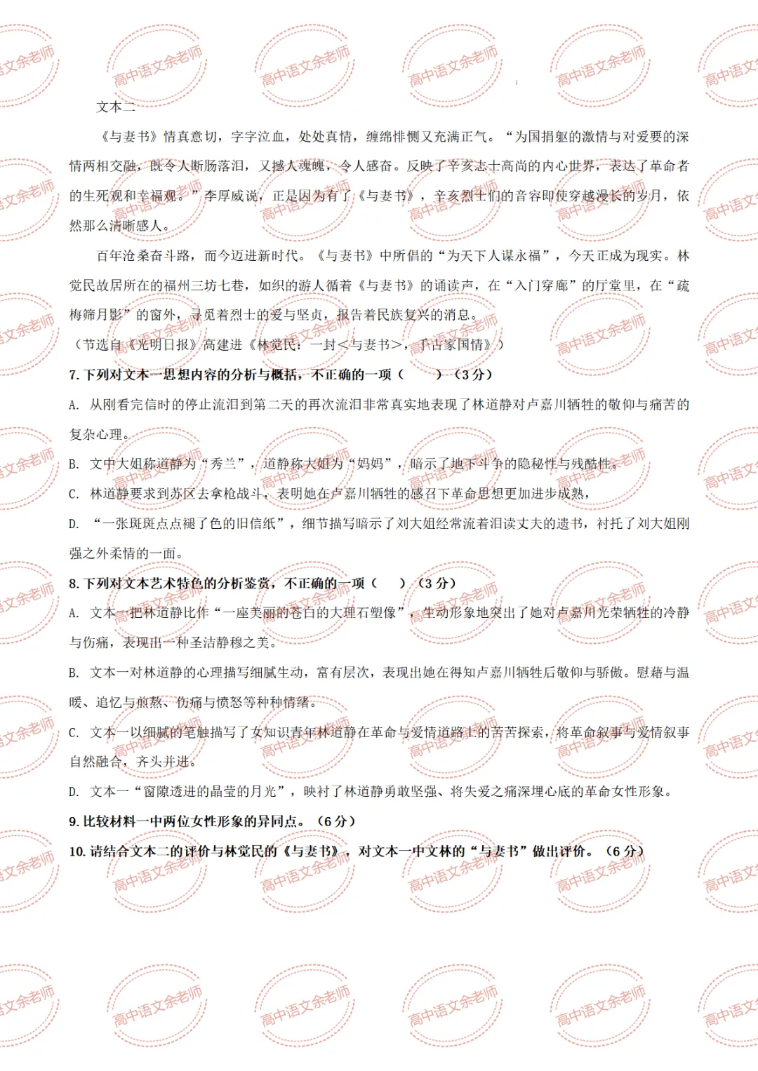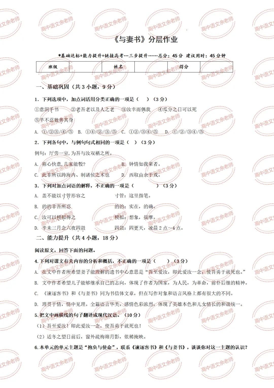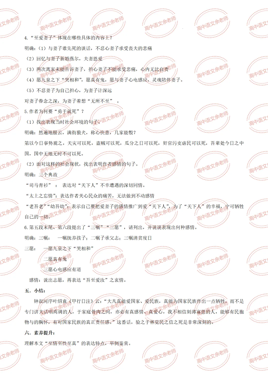 《与妻书》教案设计及课件PPT 导学案 分层作业 【适配高中语文 必修下册】教师备课