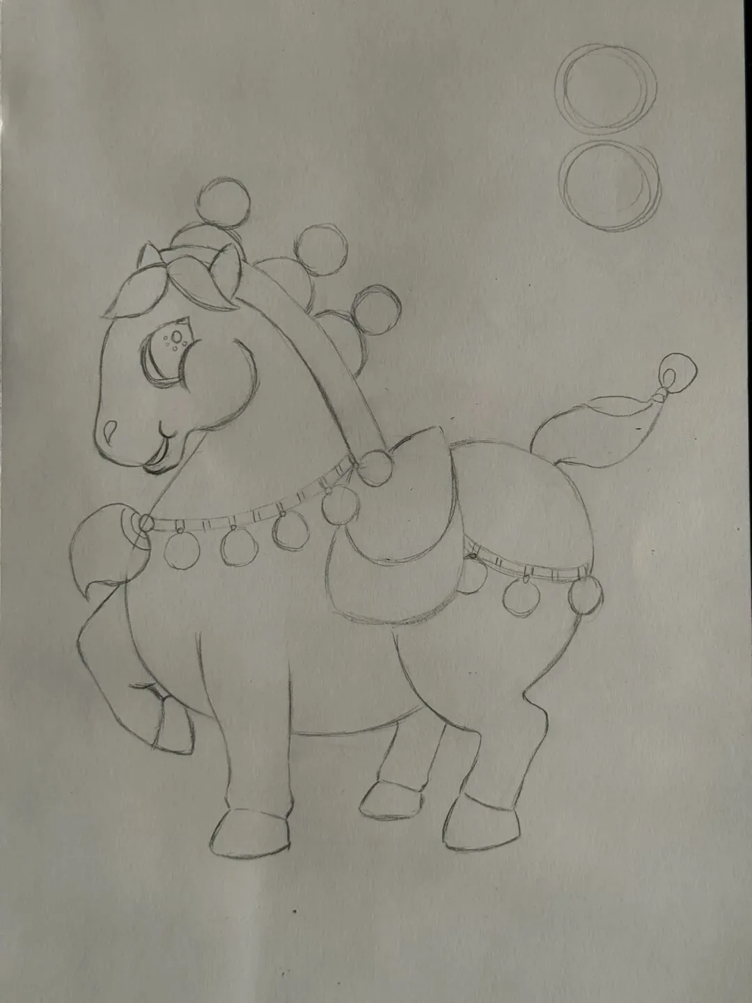 1用铅笔画出小马位置,比例,大小。