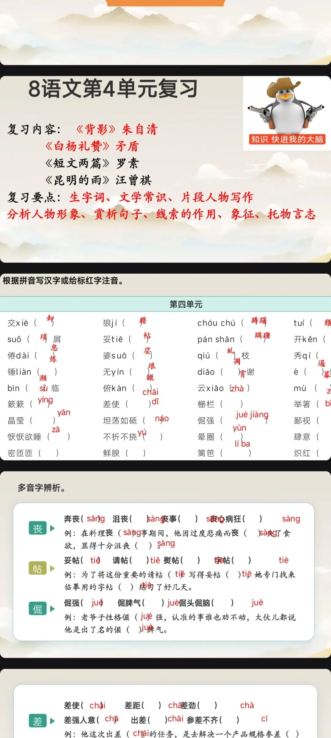 新版八上语文全册单元复习课件更新完结,用起来,期末复习轻松拿捏!(文末有下载方式)