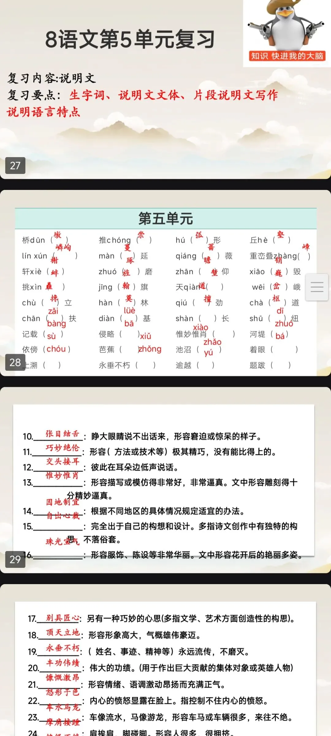 >新版八上语文全册单元复习课件更新完结,用起来,期末复习轻松拿捏!(文末有下载方式)