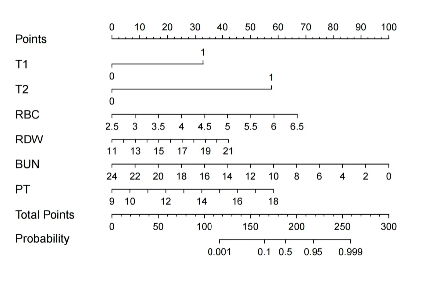 | RDW(P=0.062)虽未达到传统显著水平,但仍呈现出潜在趋势性 |