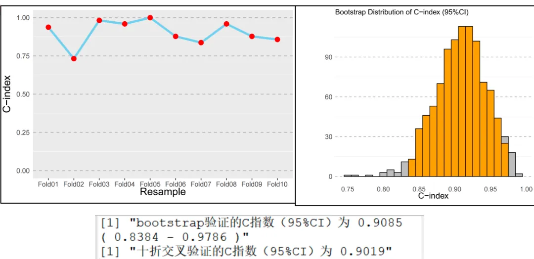 0 表示未发生事件,1 表示发生事件。在做完模型后我们可以通过predict等类似函数得到模型在不同数据集的每一个患者的预测概率