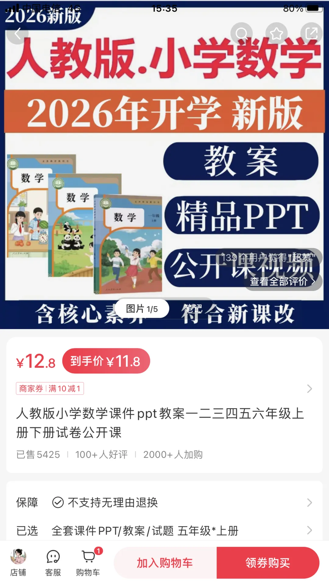 这个账号卖小学数学课件资料,一个单品就卖了5400多单