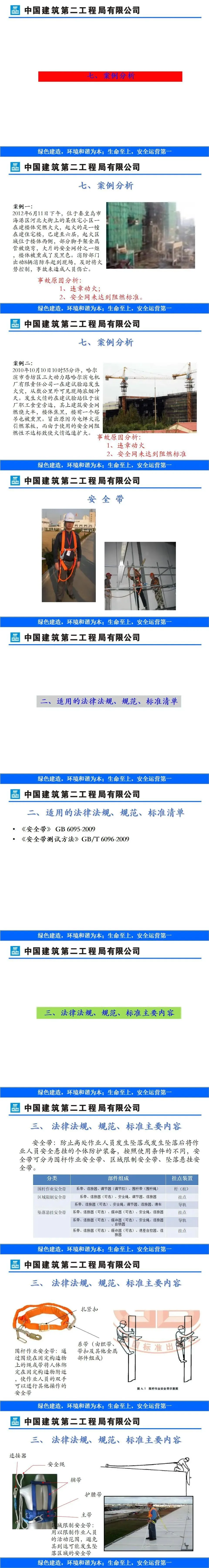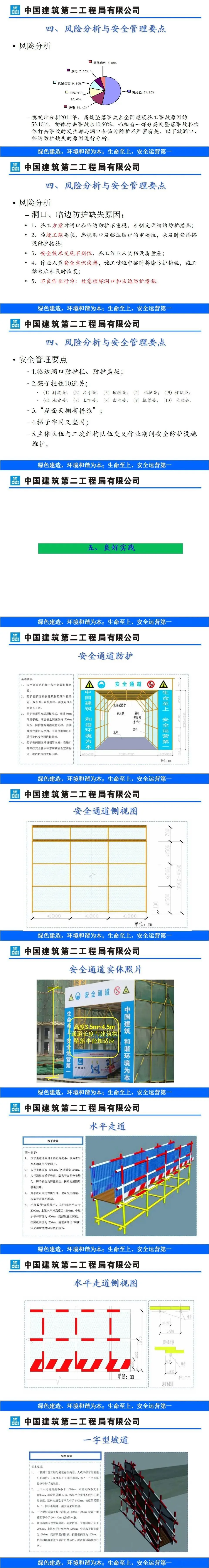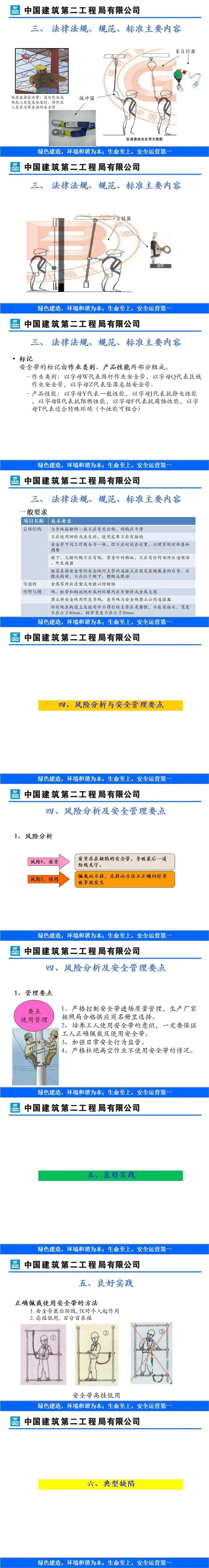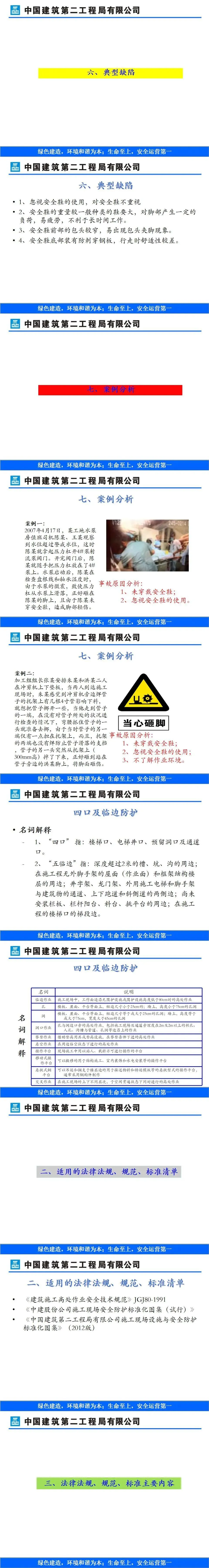 在人员安全意识提升层面,讲义通过典型事故案例与缺陷示例,强化了安全警示效果。结合真实事故案例剖析未佩戴防护用品、防护设施缺失等违规行为的严重后果,展示洞口无防护、安全网破损等典型缺陷,让作业人员直观认识到违规操作与防护缺失的危害,从思想层面筑牢安全防线,推动养成规范操作、重视防护的良好习惯。
