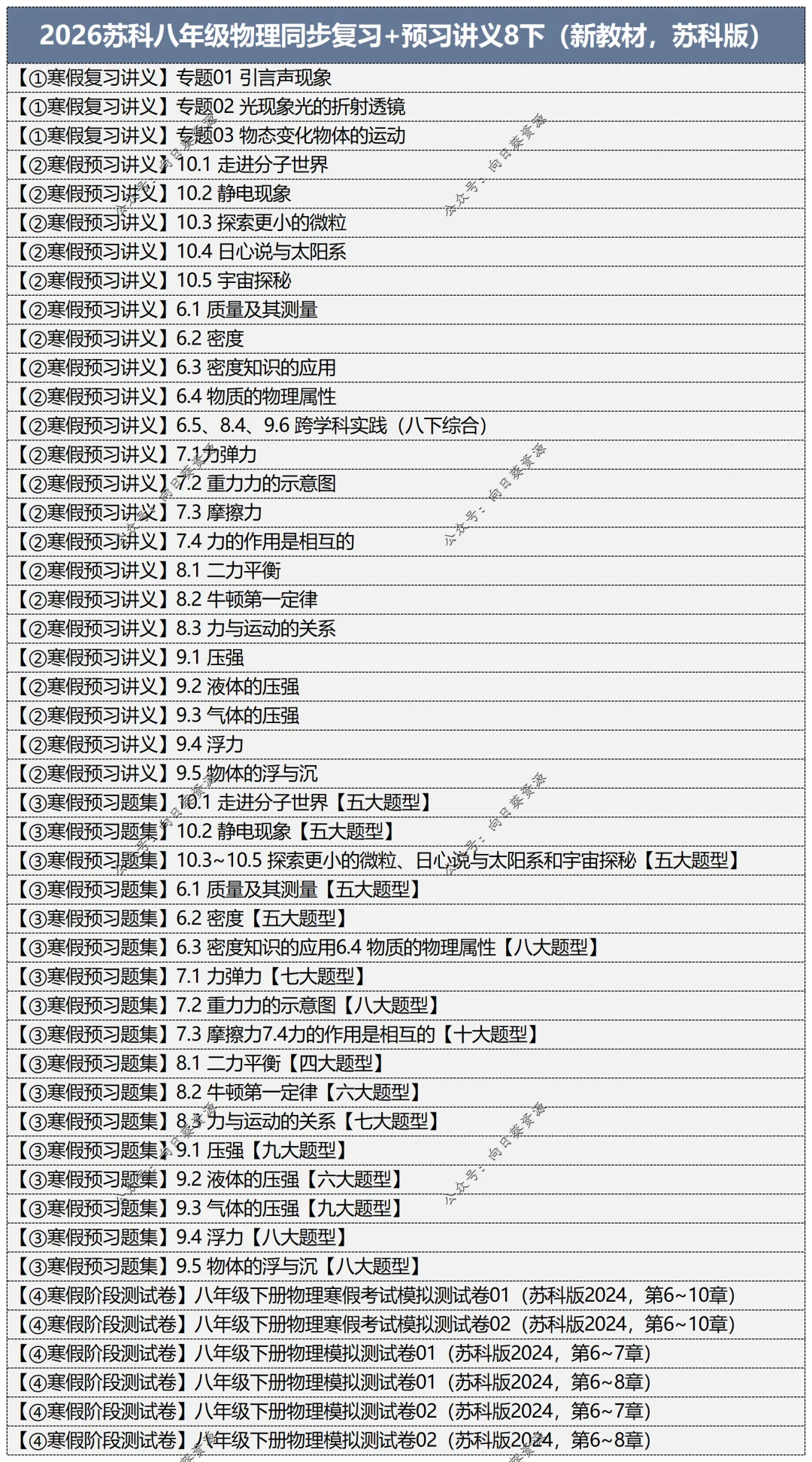 【1】2026苏科八年级物理同步复习+预习讲义8下(新教材,苏科版)复习3专题+预习6-10章+题集,预习内含模块:知识导航、知识讲解、典例分析、巩固训练。