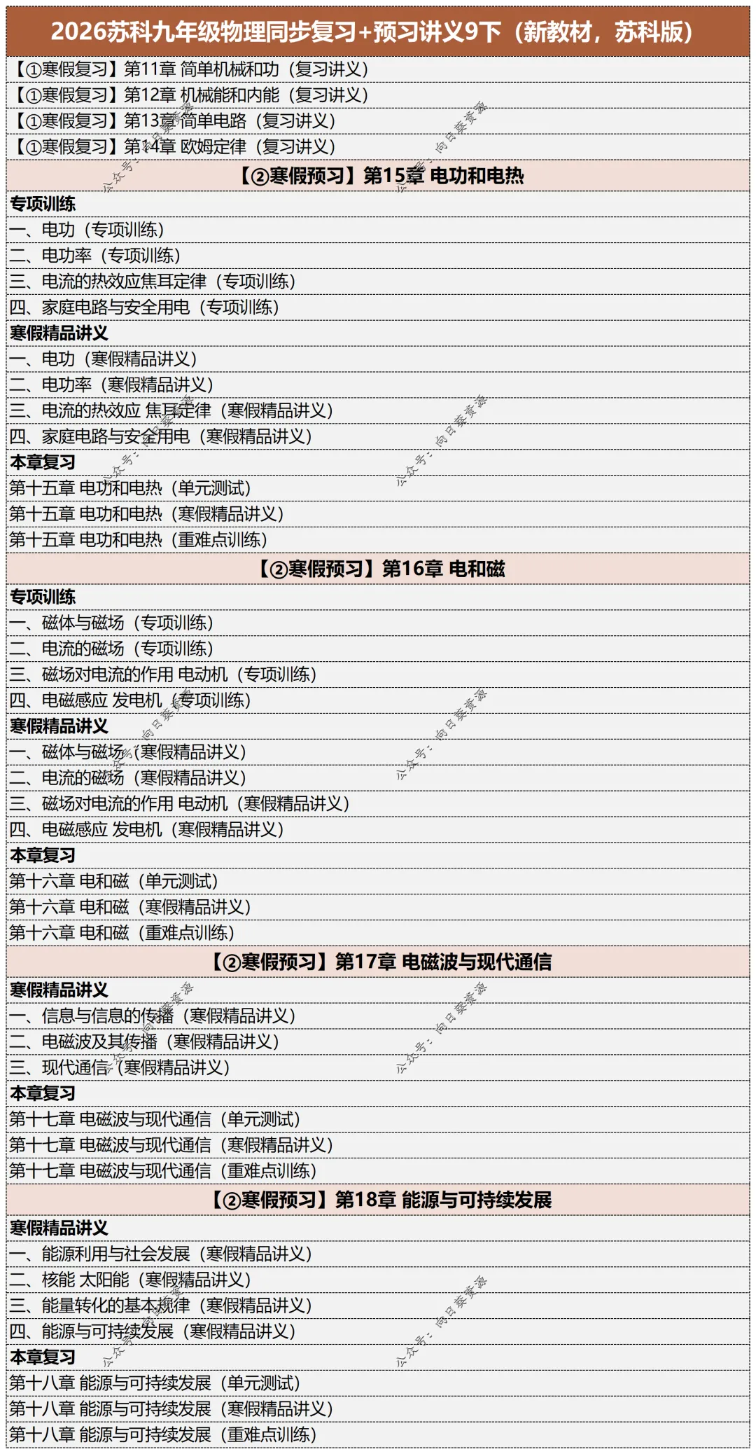 【2】2026苏科九年级物理同步复习+预习讲义9下(新教材,苏科版)复习11-14章+预习15-18章,内含模块:学习目标、思维导图、知识梳理、方法技巧、巩固训练。