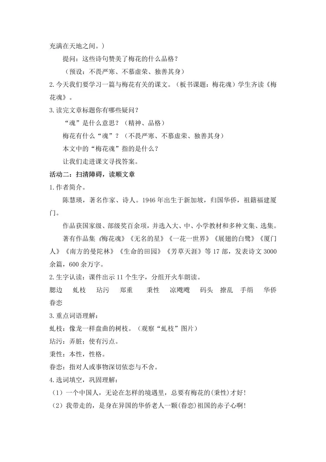 五下第一单元《梅花魂》| 教学课件+教学设计