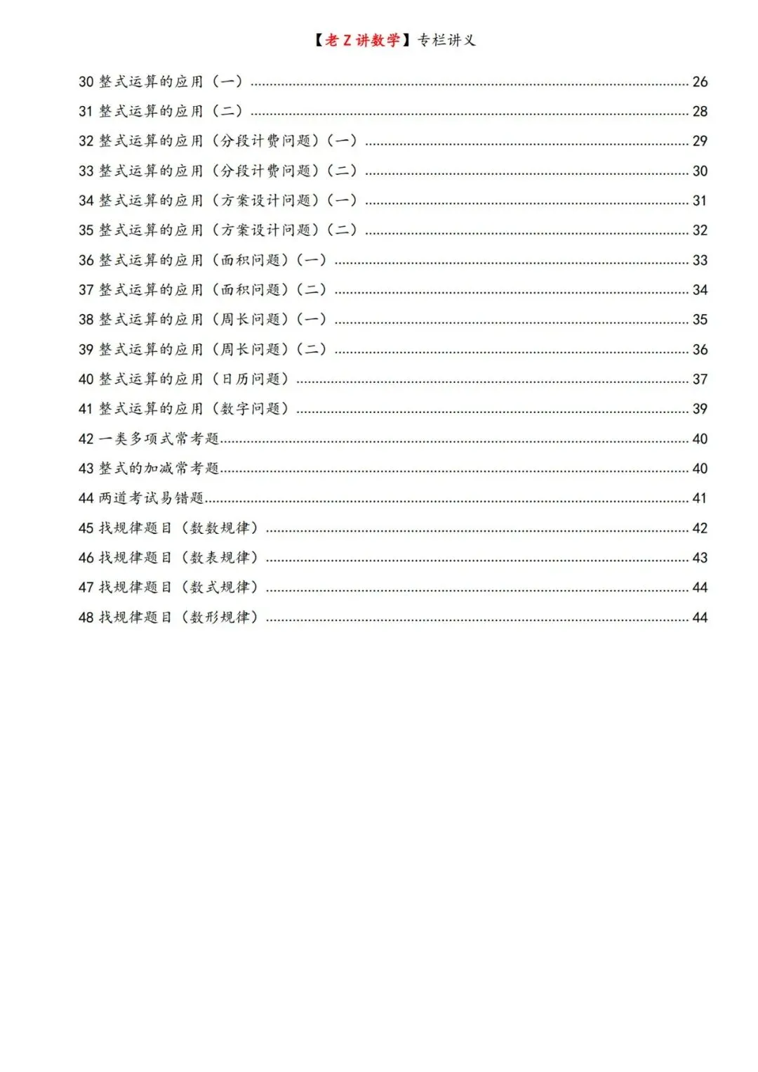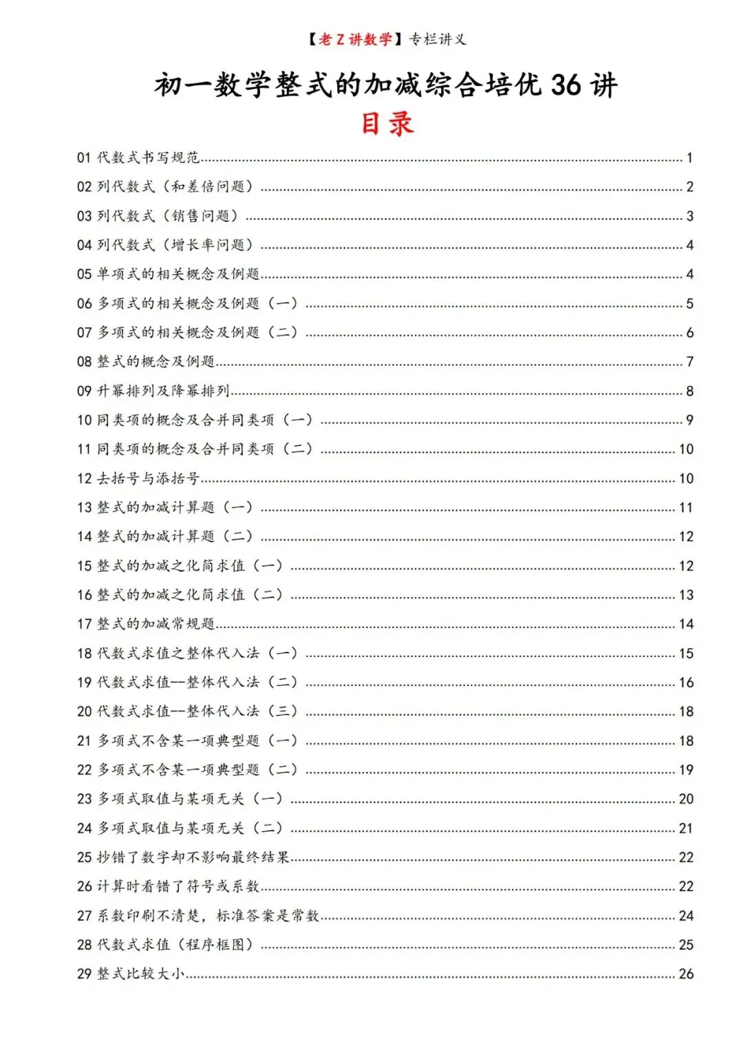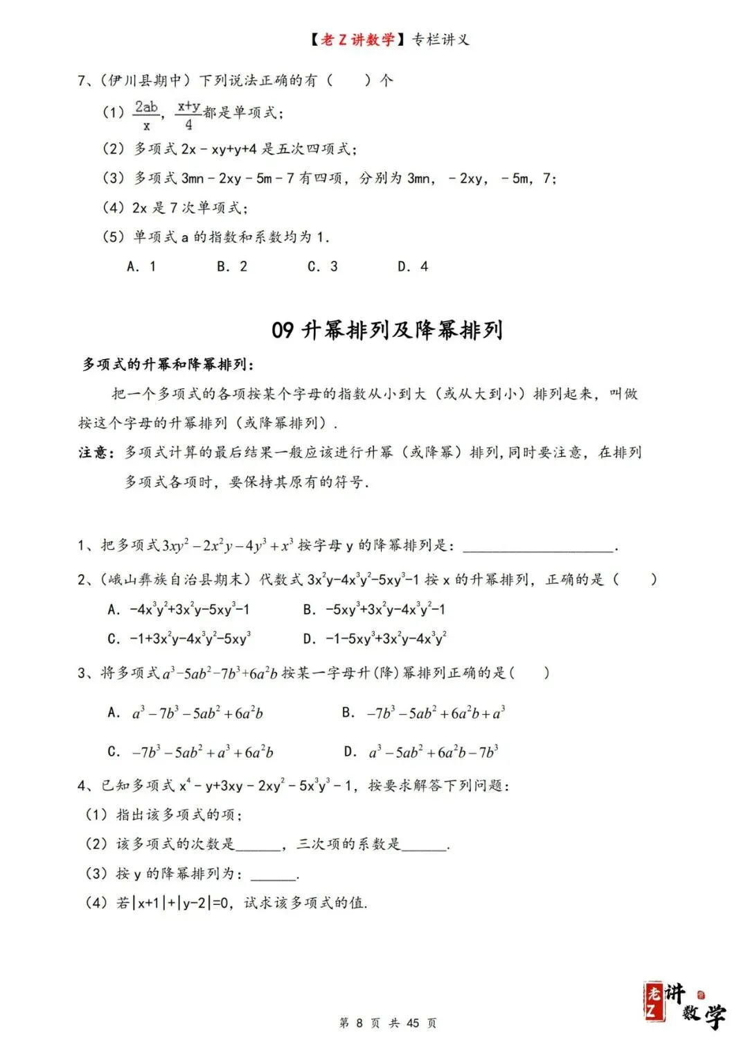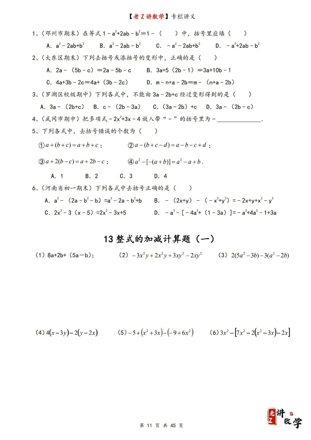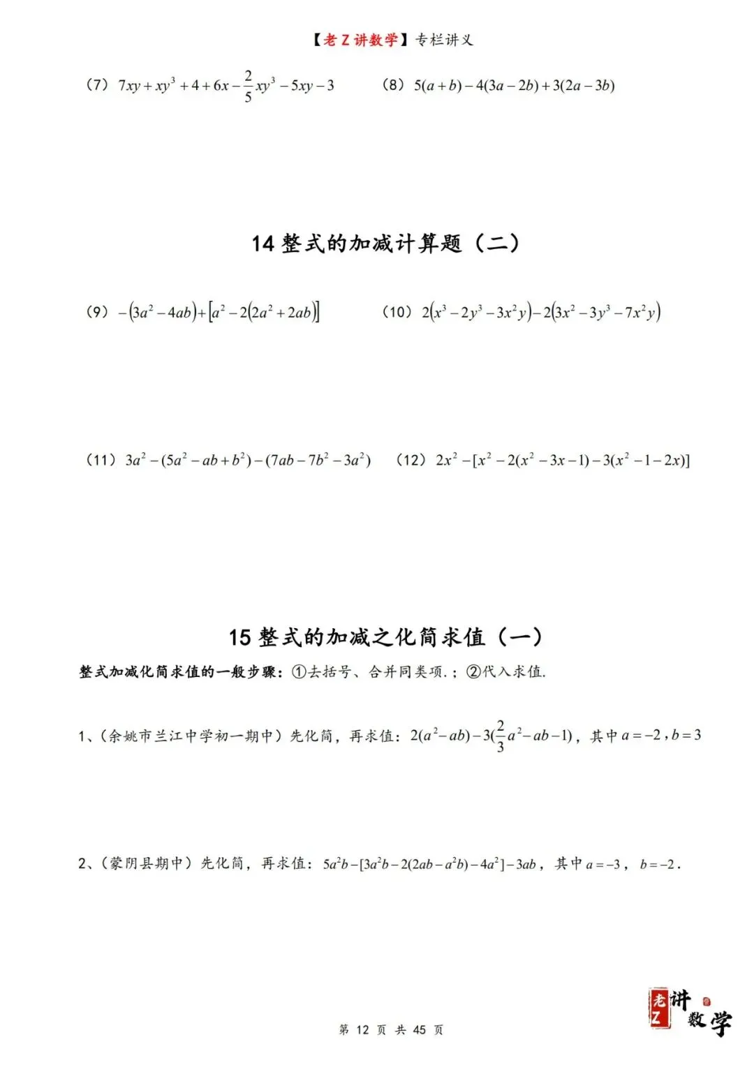 >讲义学案——整式加减