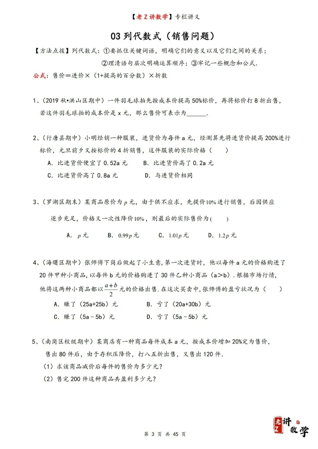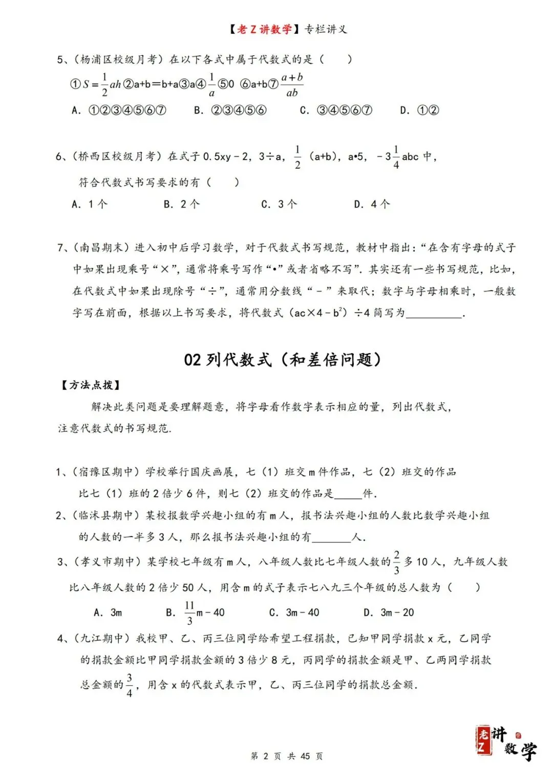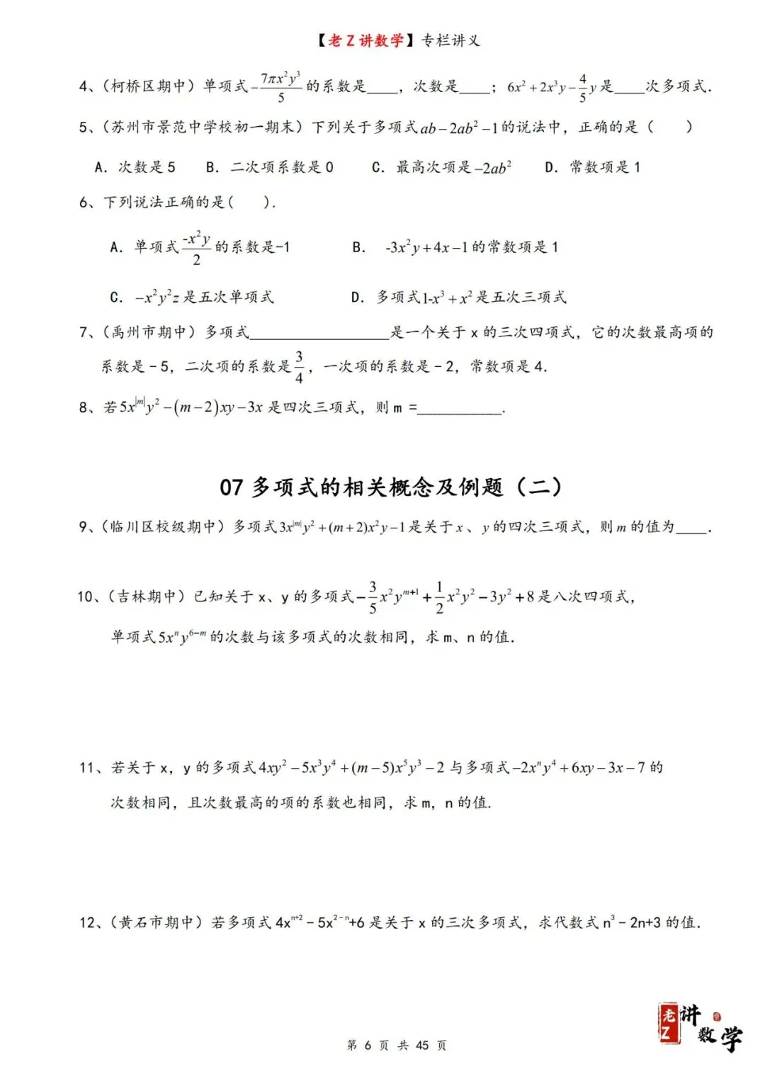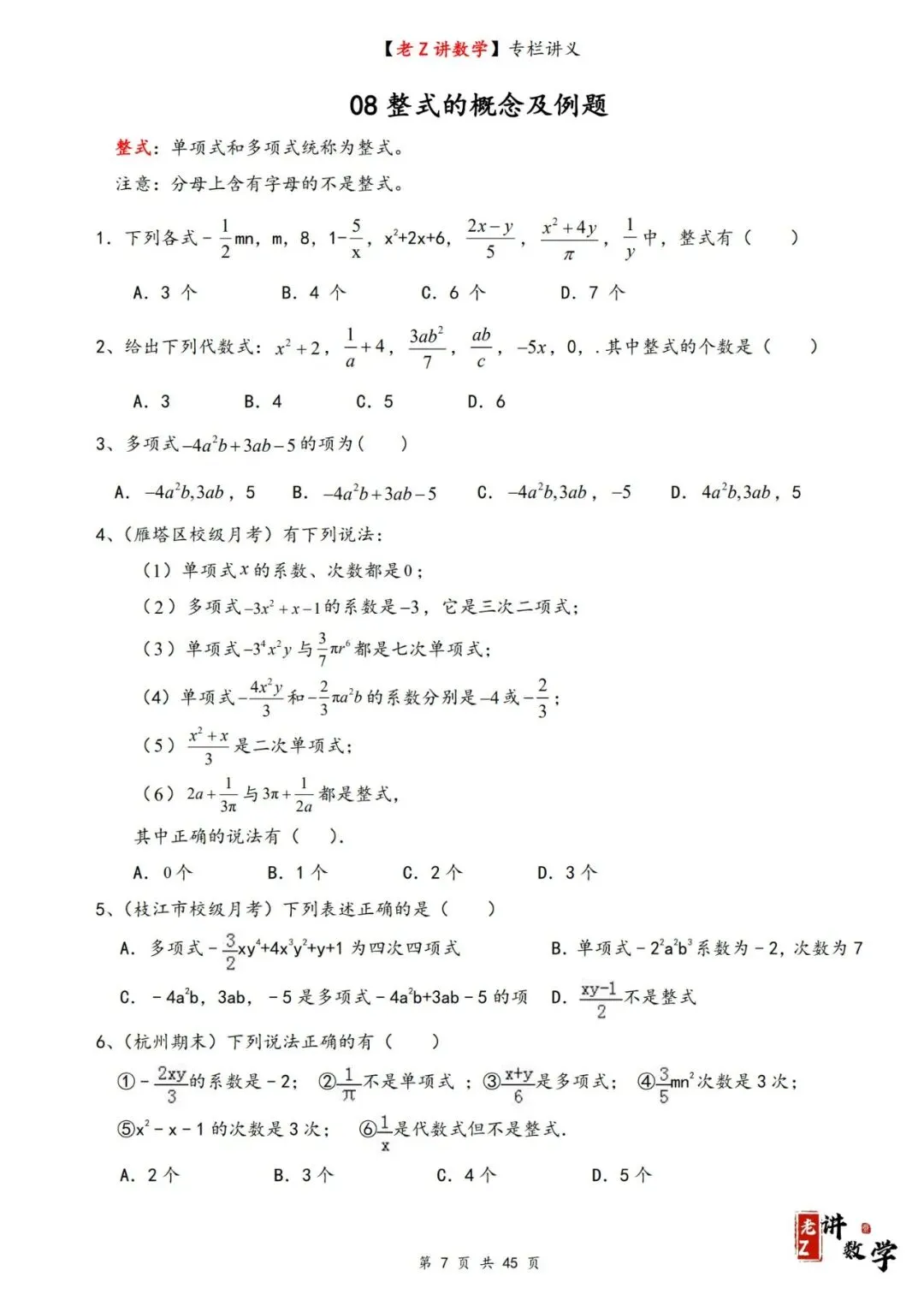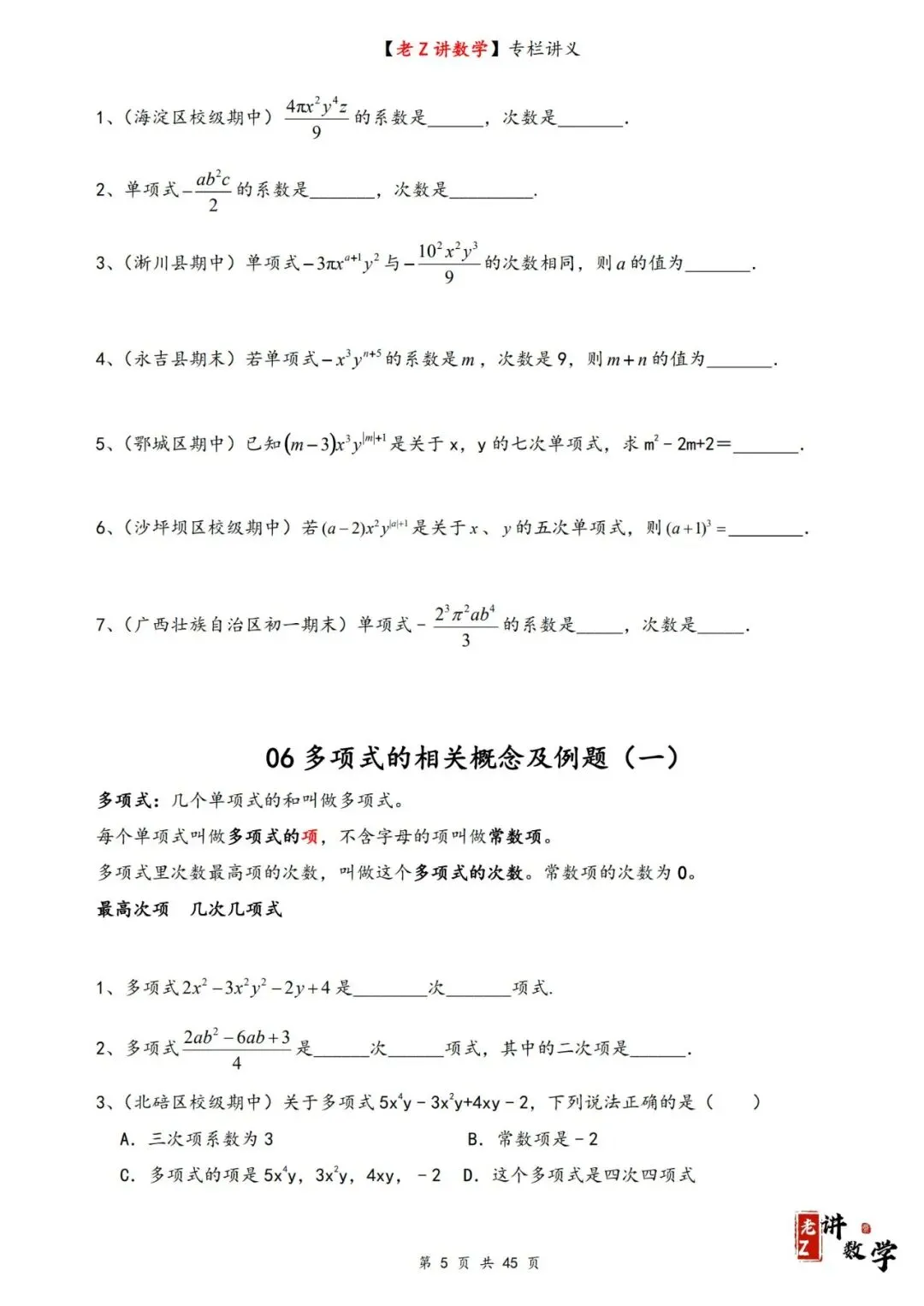 >讲义学案——整式加减
