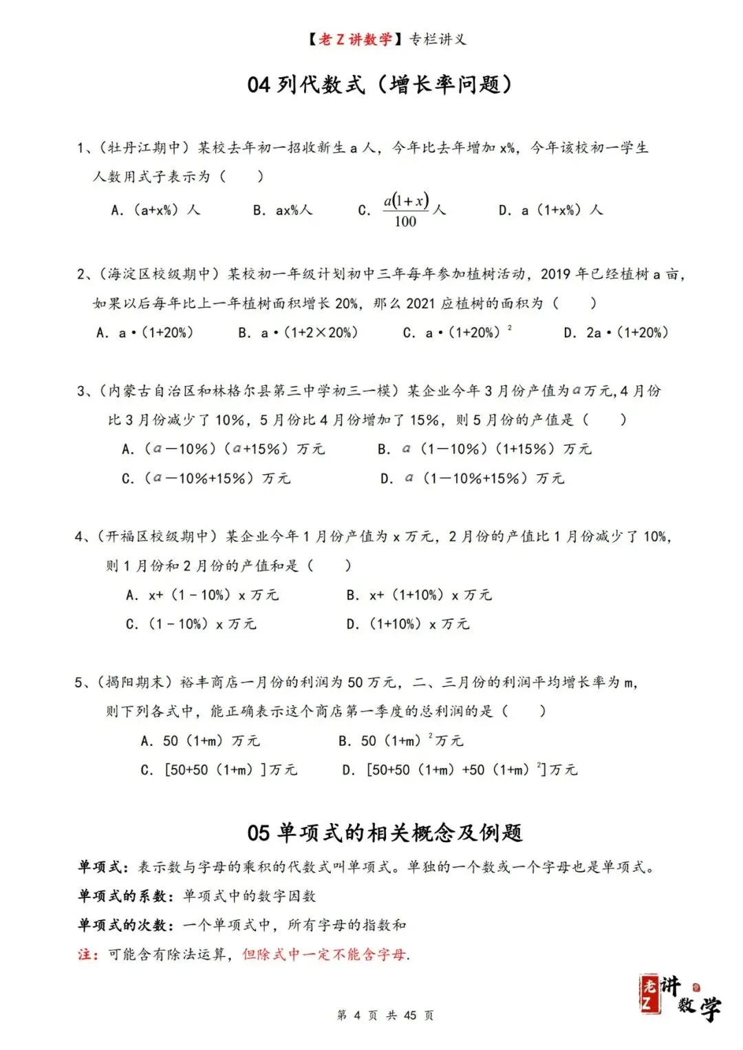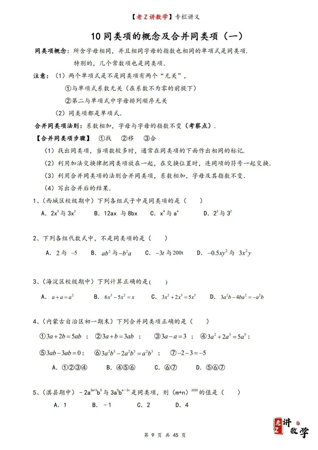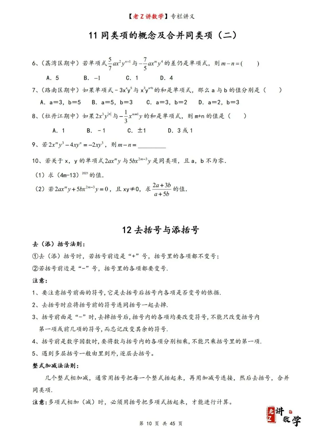 讲义学案——整式加减