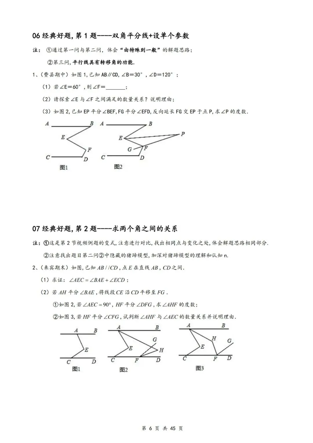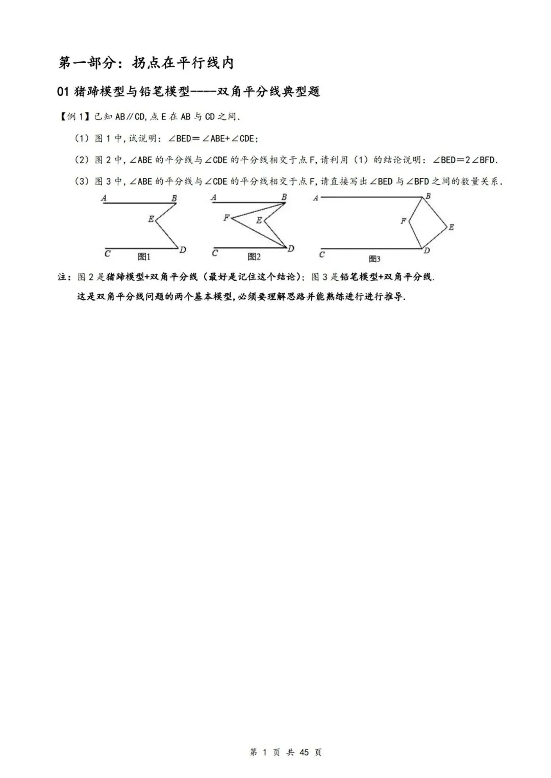 >讲义学案——平行线拐点问题