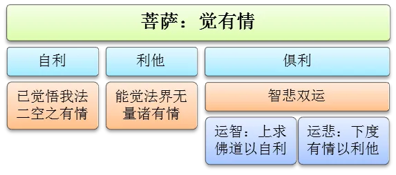 三、智悲并运,自他两利,运智,上求佛觉以自利;运悲,下度有情以利他。