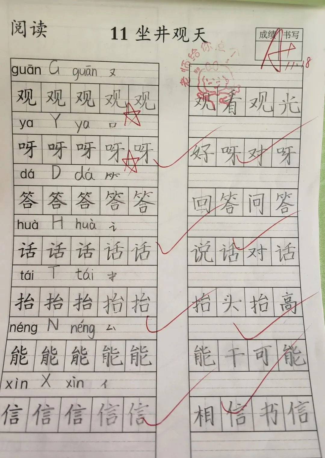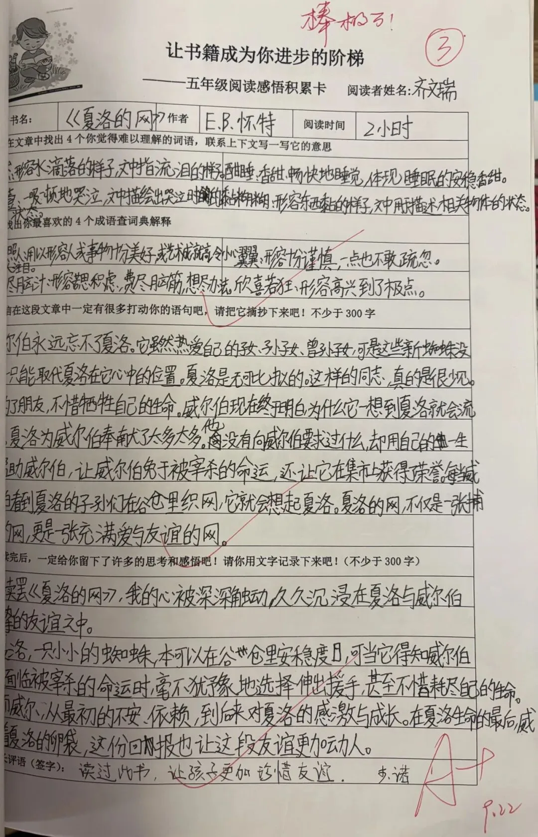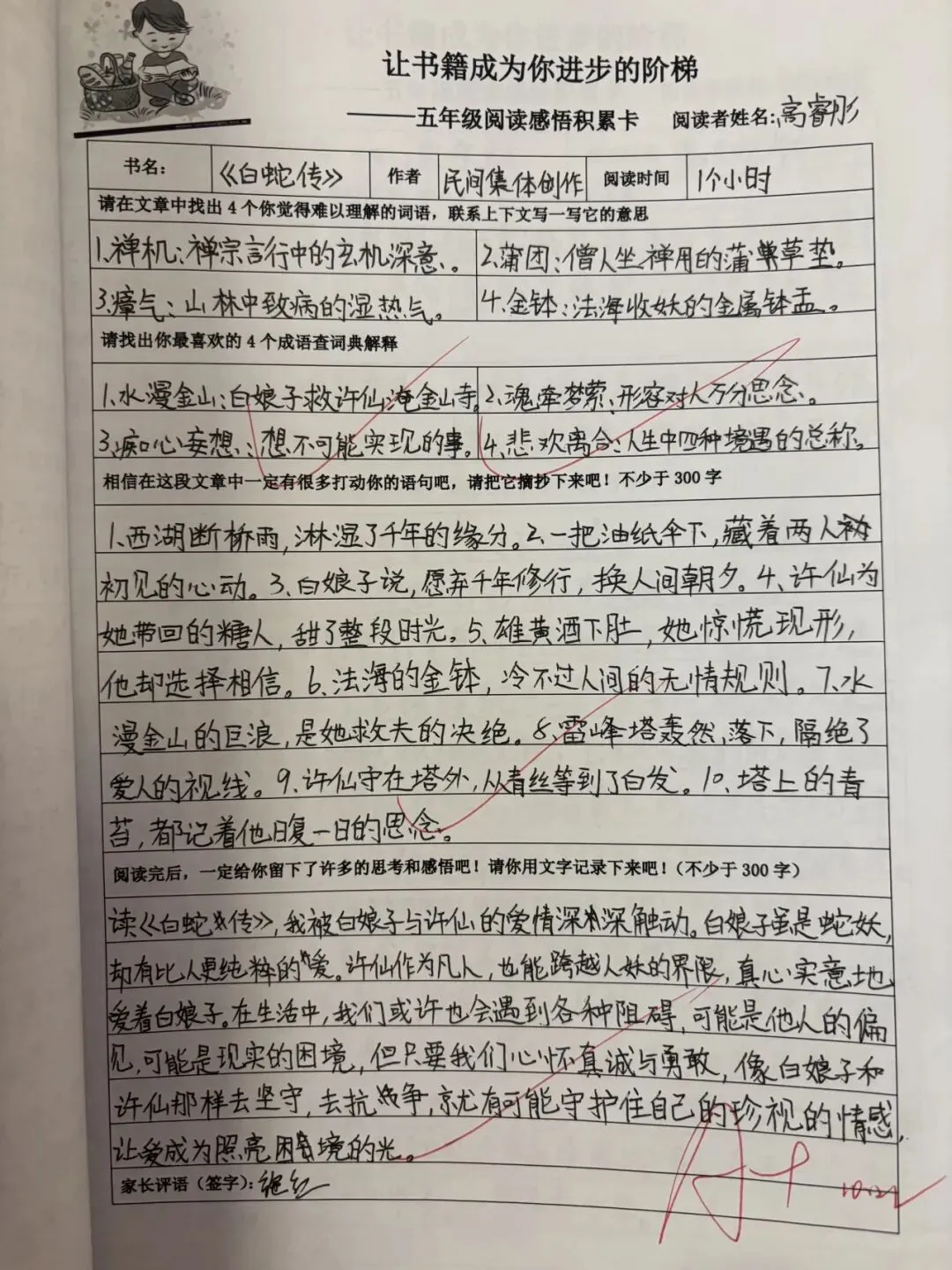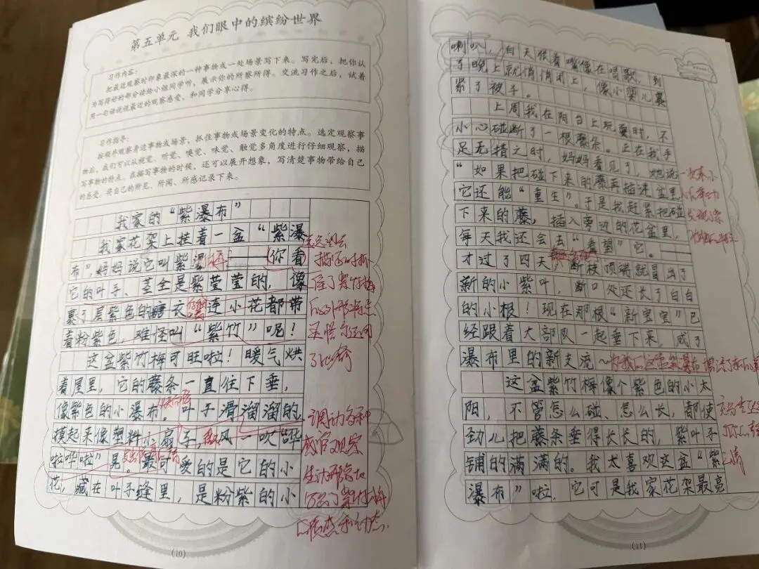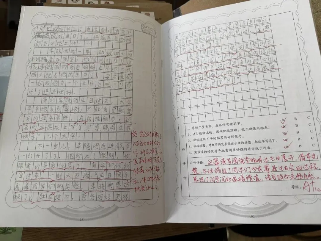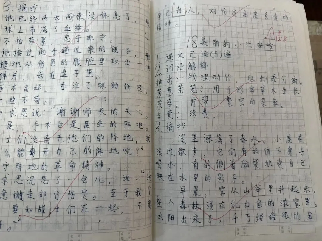翻开一本本语文作业,工整美观的汉字书写令人赏心悦目。从低年级的拼音田字格,到中高年级的课后习题、单元习作,每一页都凝聚着孩子们的认真与坚持。规范的格式、整洁的卷面、及时的批改与复批,展现了语文学习严谨扎实的日常。