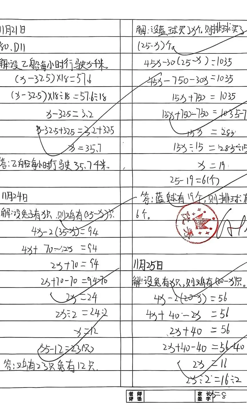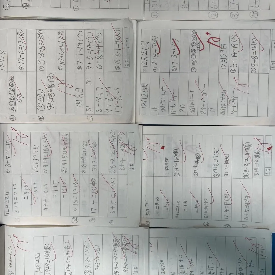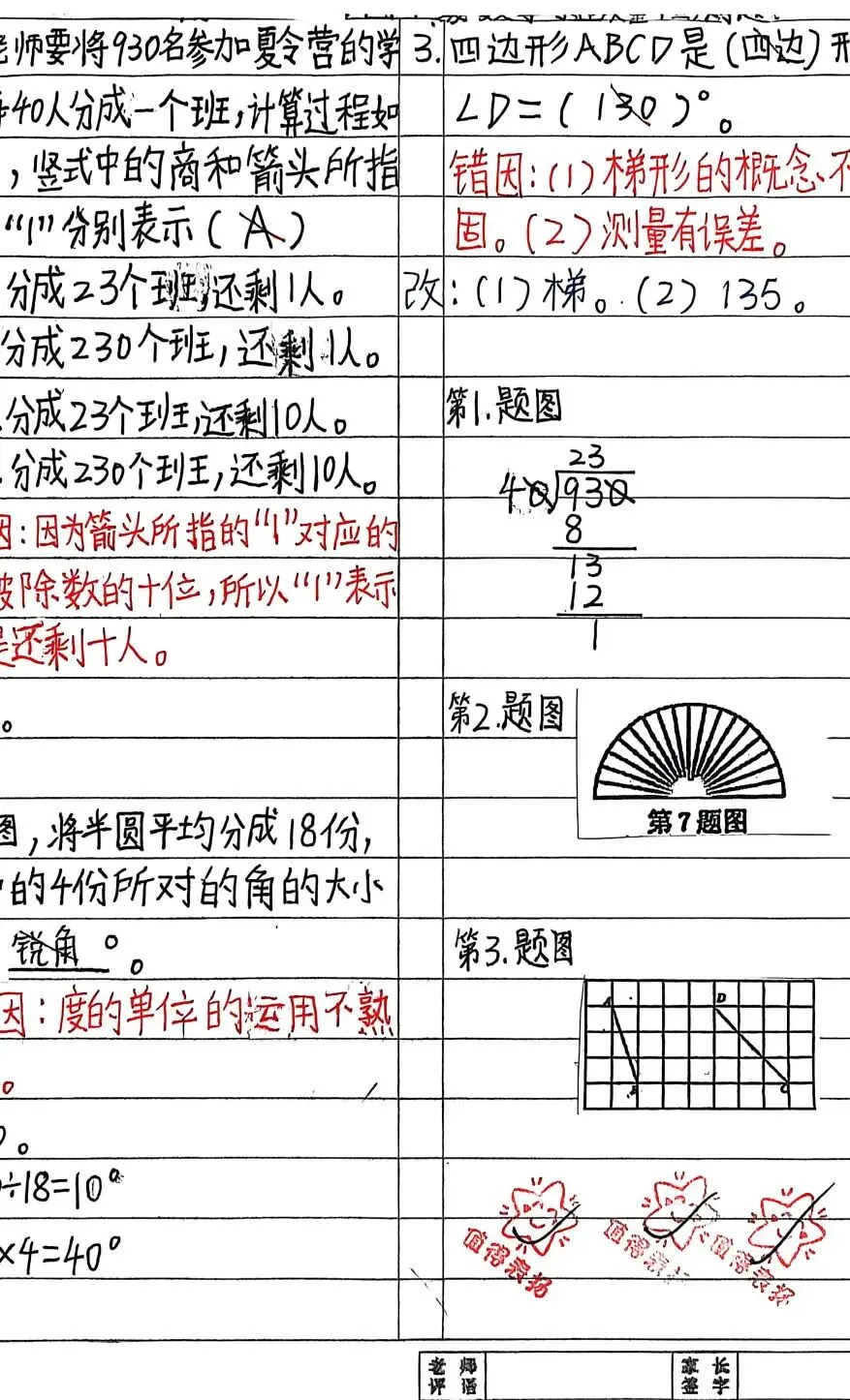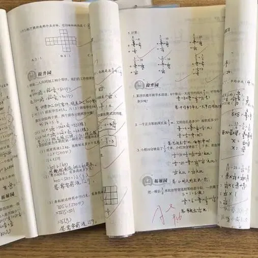 数学作业是理性思维的直观呈现。一行行清晰的计算、一幅幅精准的图形、一道道逻辑严密的解题过程,如同孩子们思维攀登的阶梯。教师的批改细致入微,不仅关注结果的正误,更注重思考过程的引导与鼓励性评语,激发了学生探究数学的兴趣。
