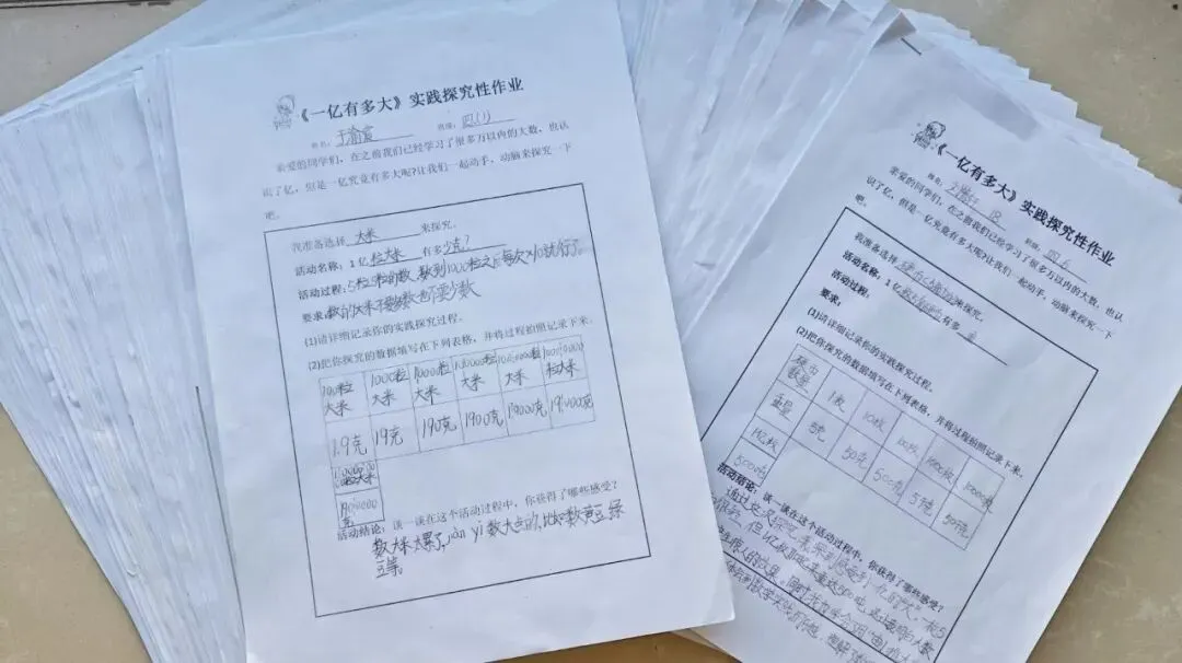 数学的特色作业充满了巧思与乐趣。“创意手抄报”融合了美术与数学知识,“一亿有多大”将大数知识应用于生活,“数学错题整理与改编”培养了元认知能力。数学不再是枯燥的符号,而是可探索、可创造的奇妙世界。