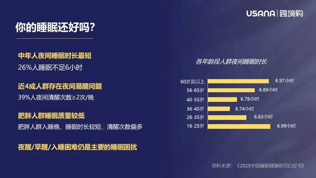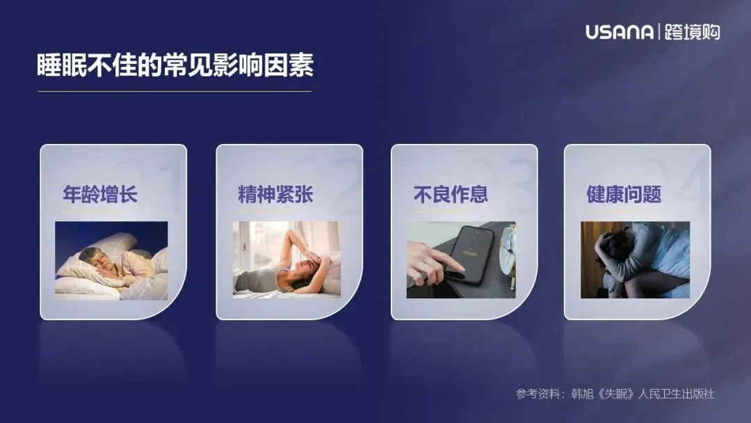 中年人:面临激素水平调整的时期,容易出现围绝经期或更年期症状,影响睡眠。