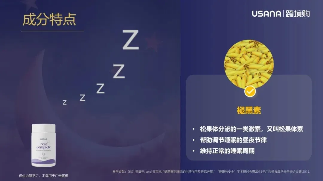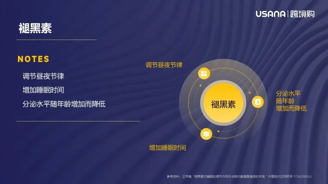 褪黑素可通过加速入睡、改善睡眠维持和提高睡眠效率来产生催眠效果,从而维持正常的昼夜节律。