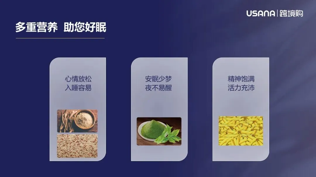 2、配方从多维度多角度改善睡眠、情绪等问题,如果睡眠问题一直不能改善,建议从全身健康、细胞健康角度,全方位进行生活方式调整和营养加持,改善整体健康水平后,相信睡眠问题也会得到改善。